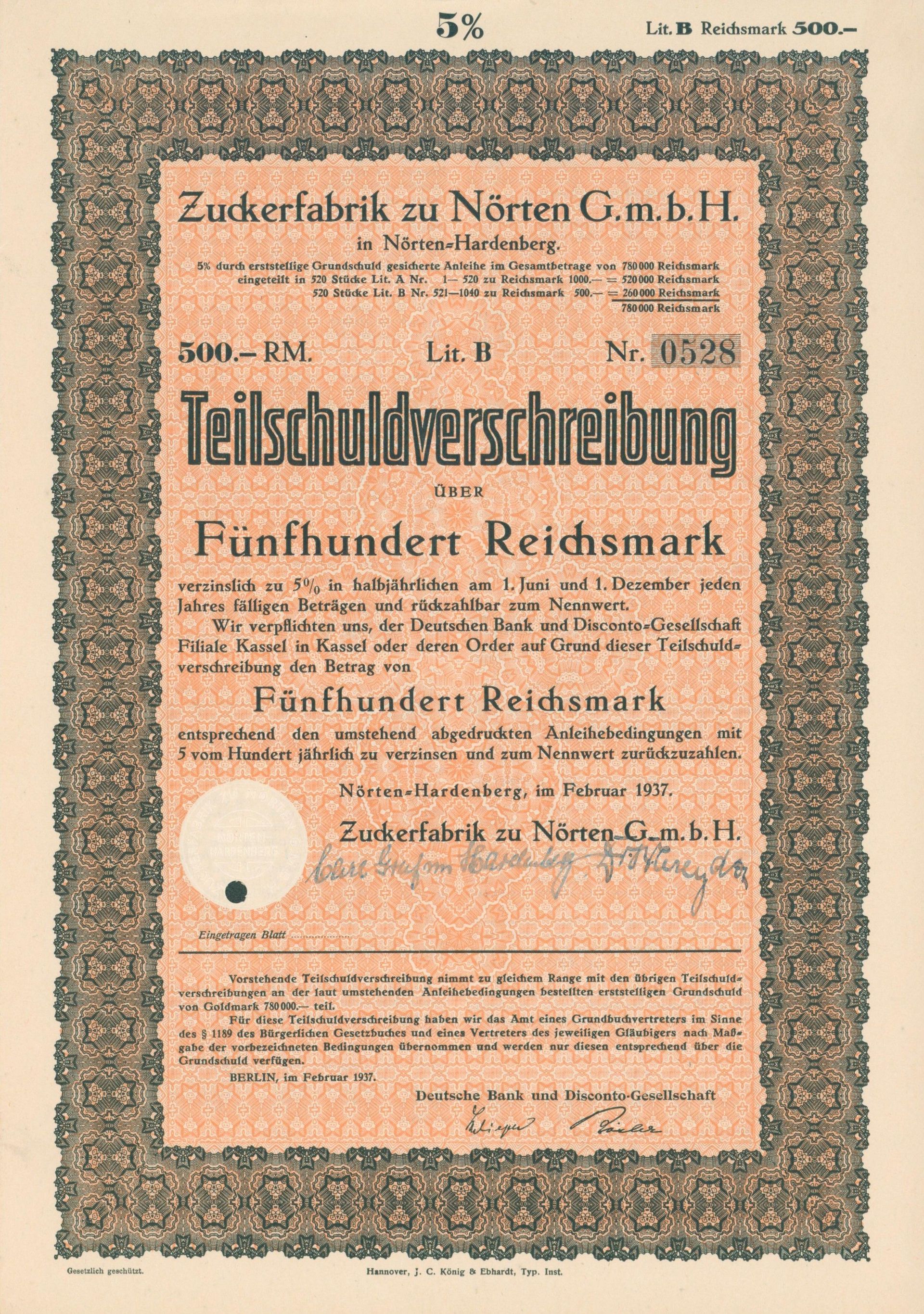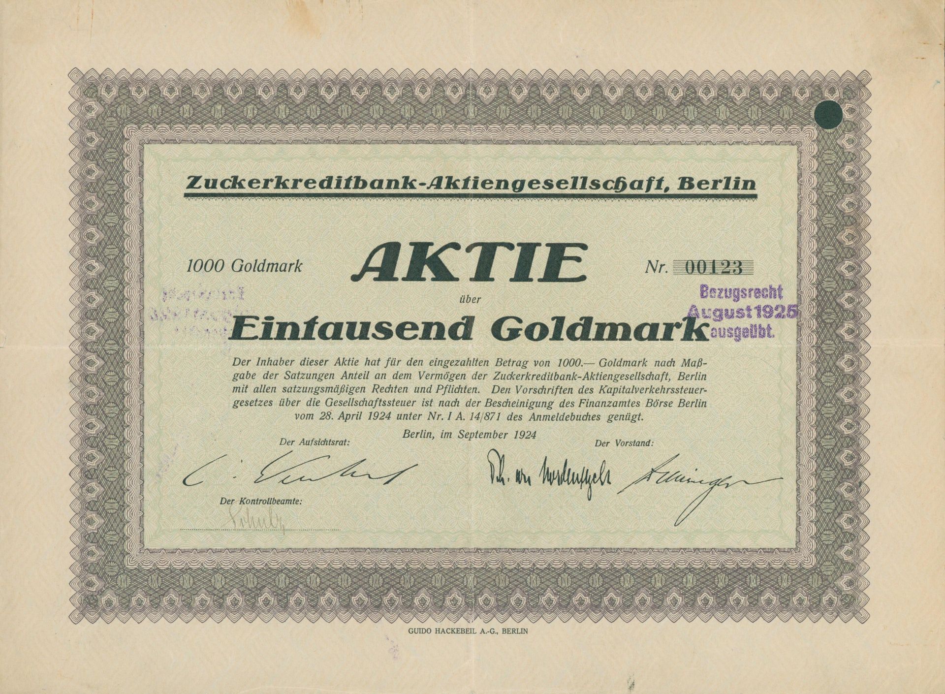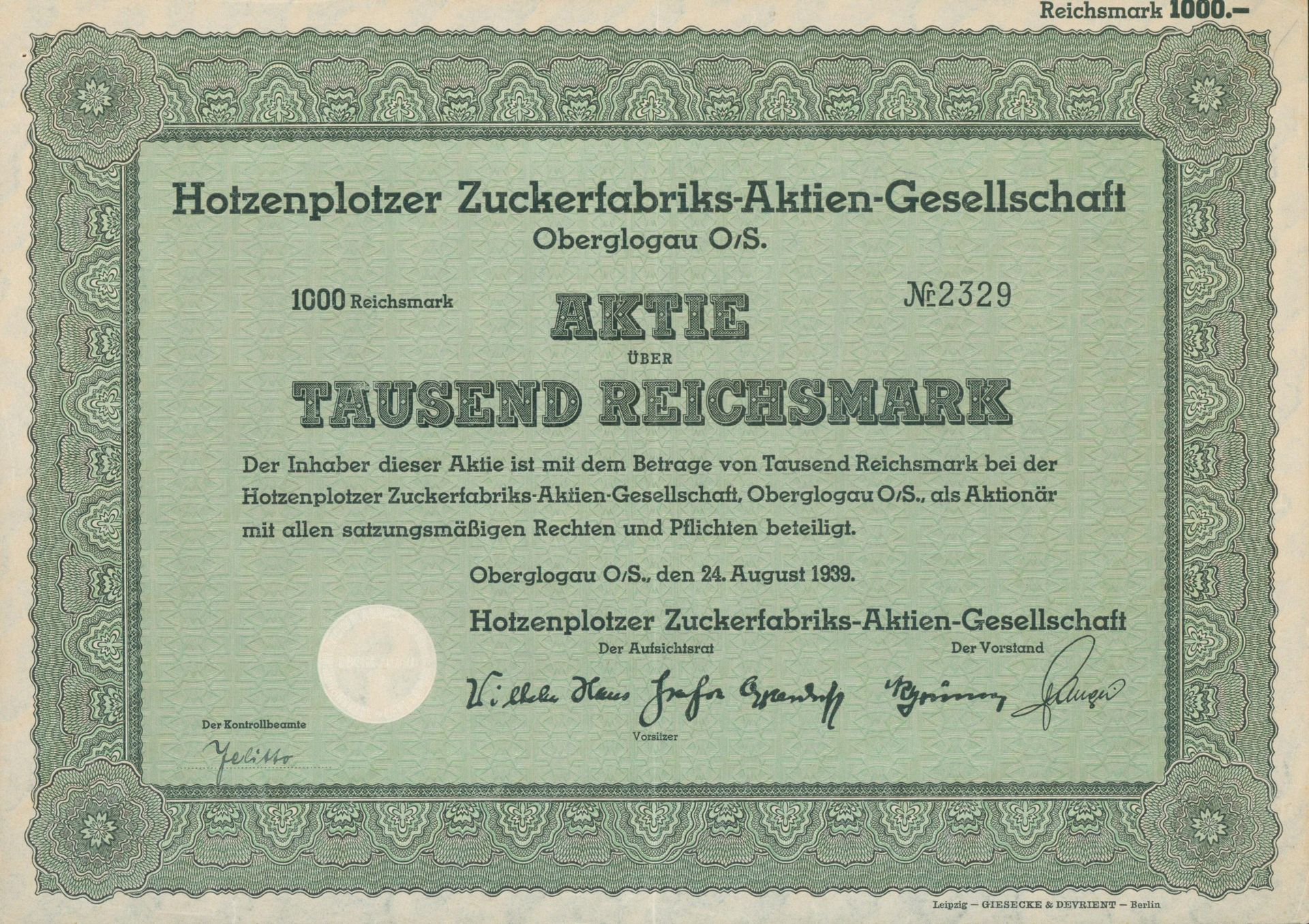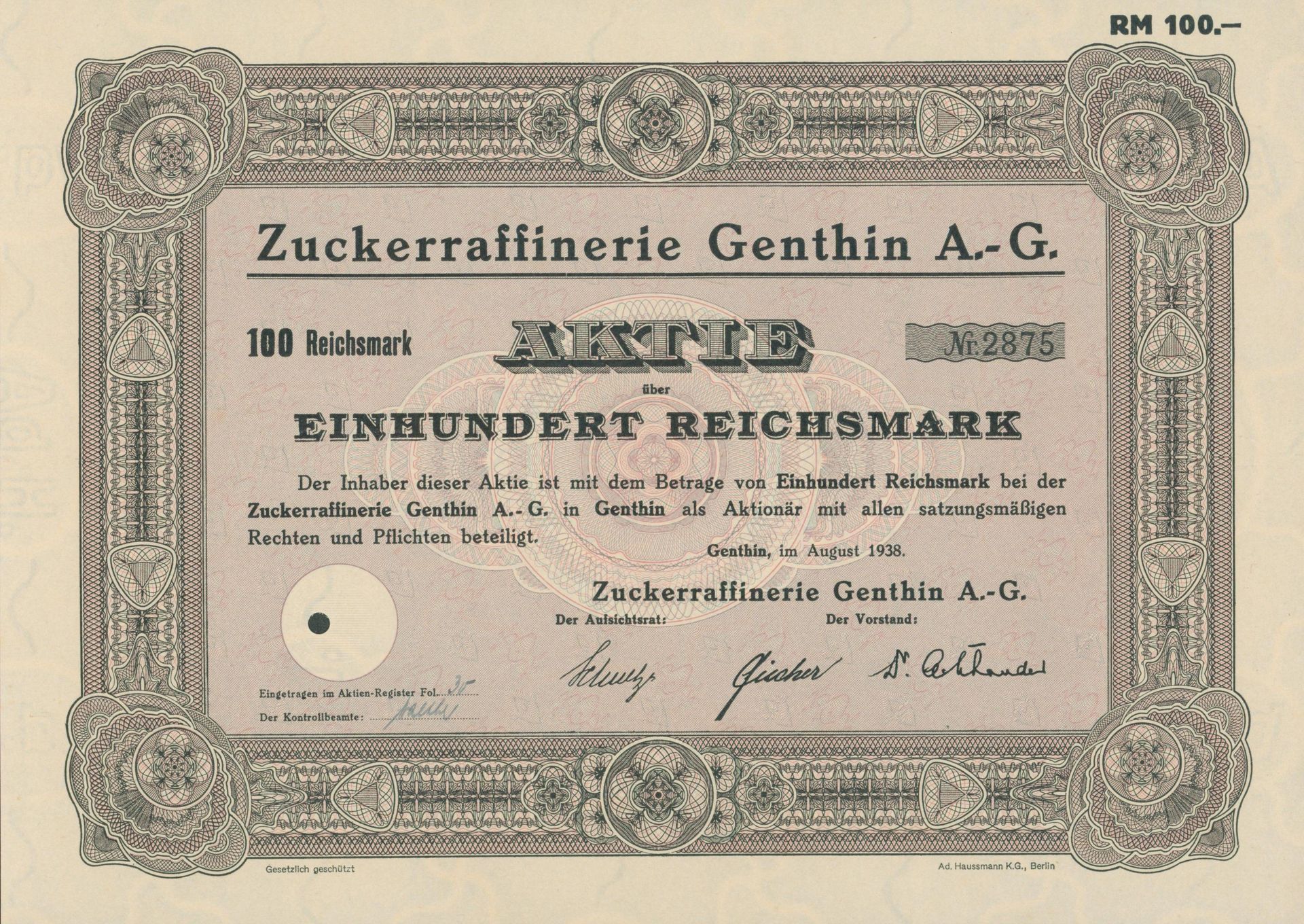 Die älteste bekannte deutsche Aktie aus der Zuckerindustrie - eine Raffinerie in Königsberg.