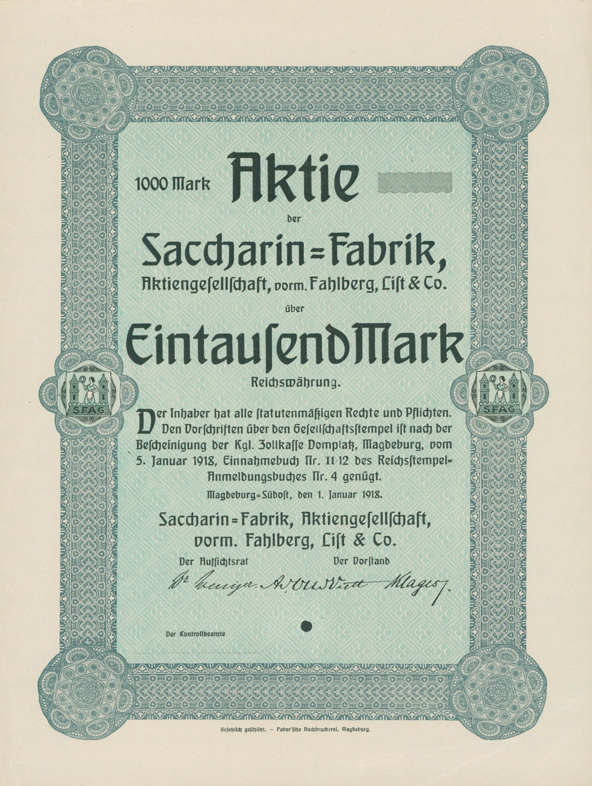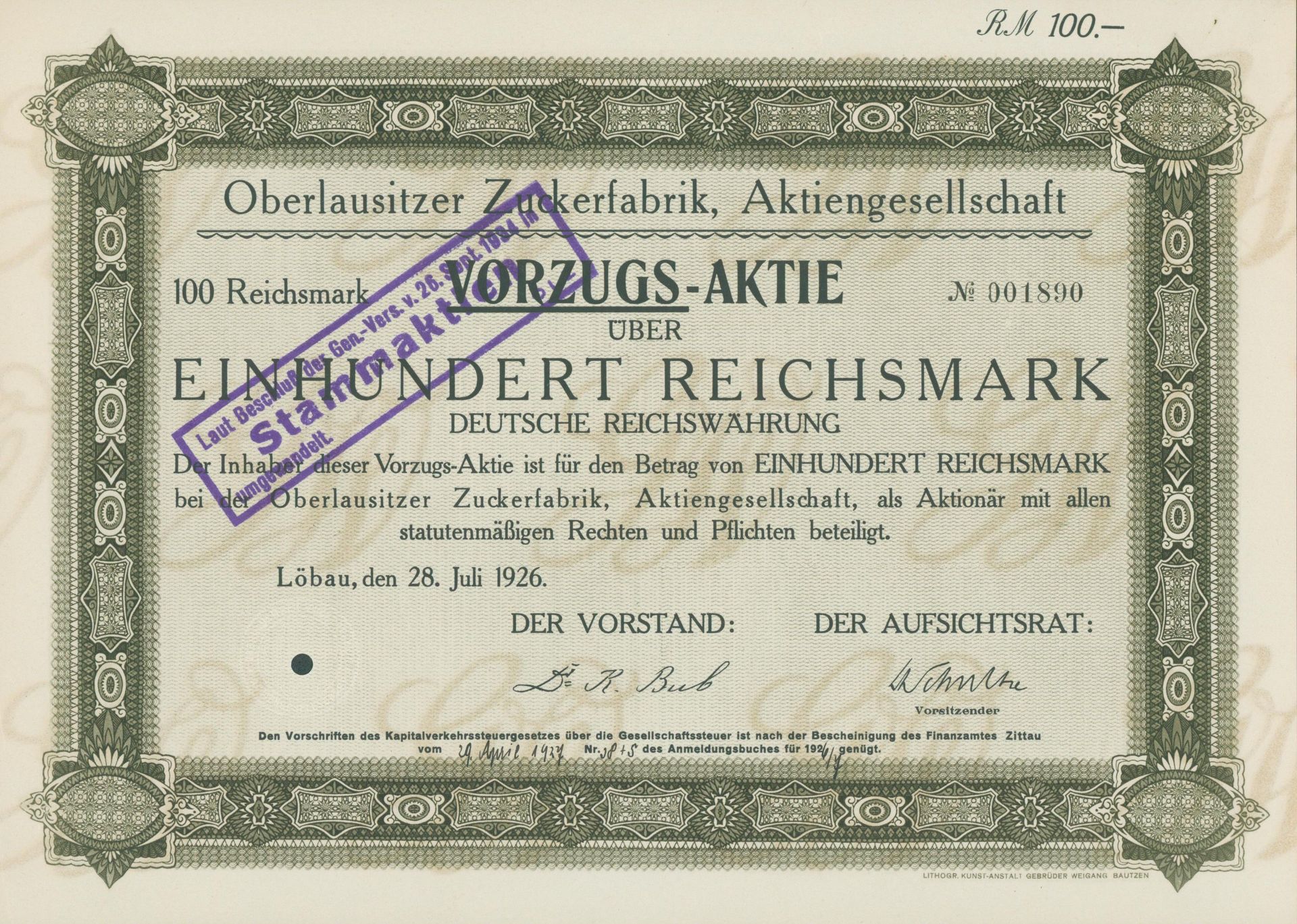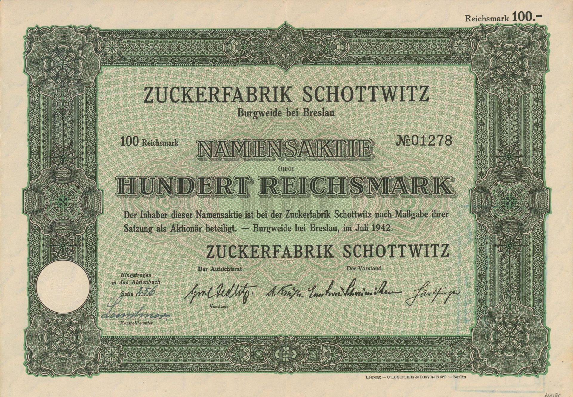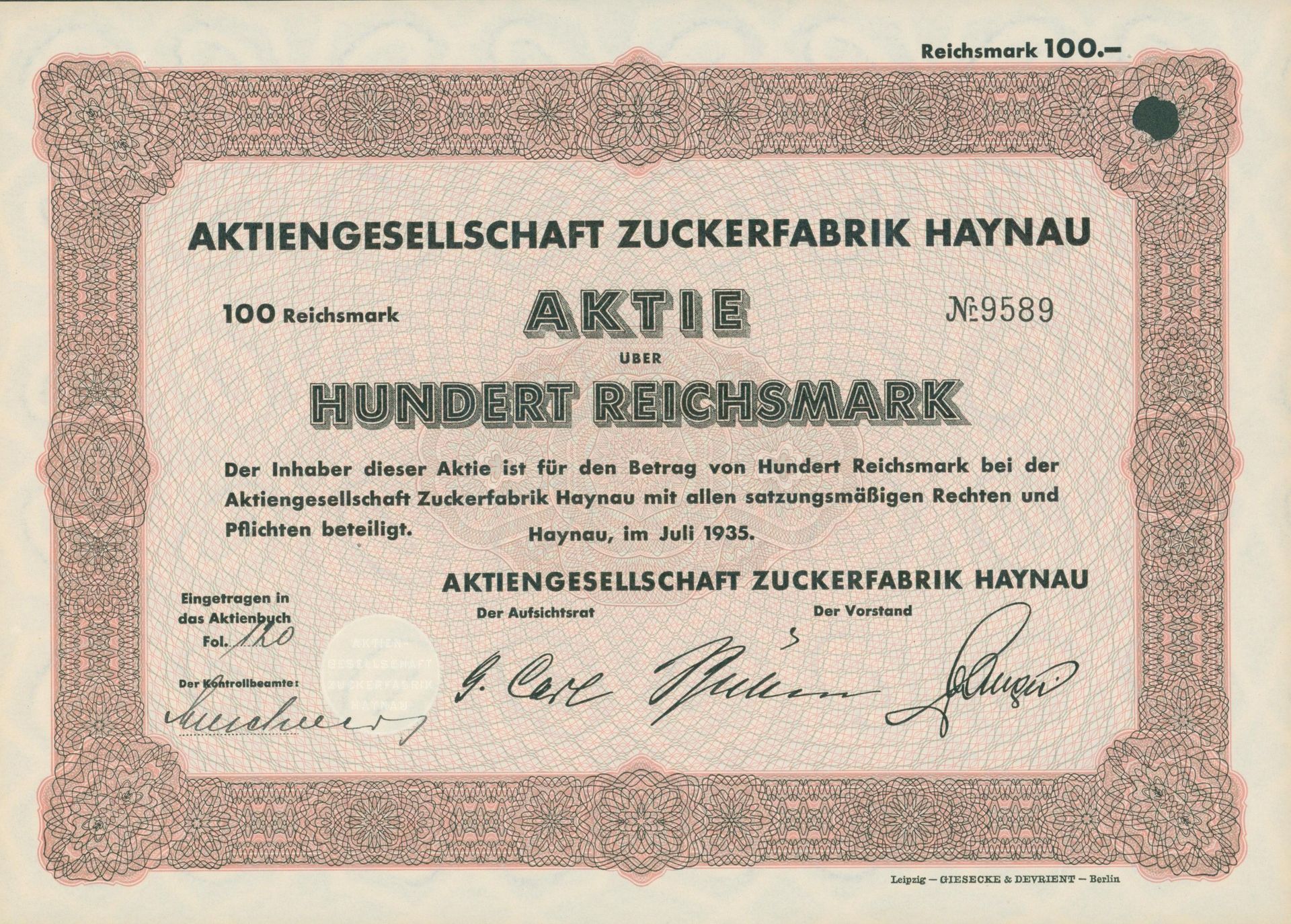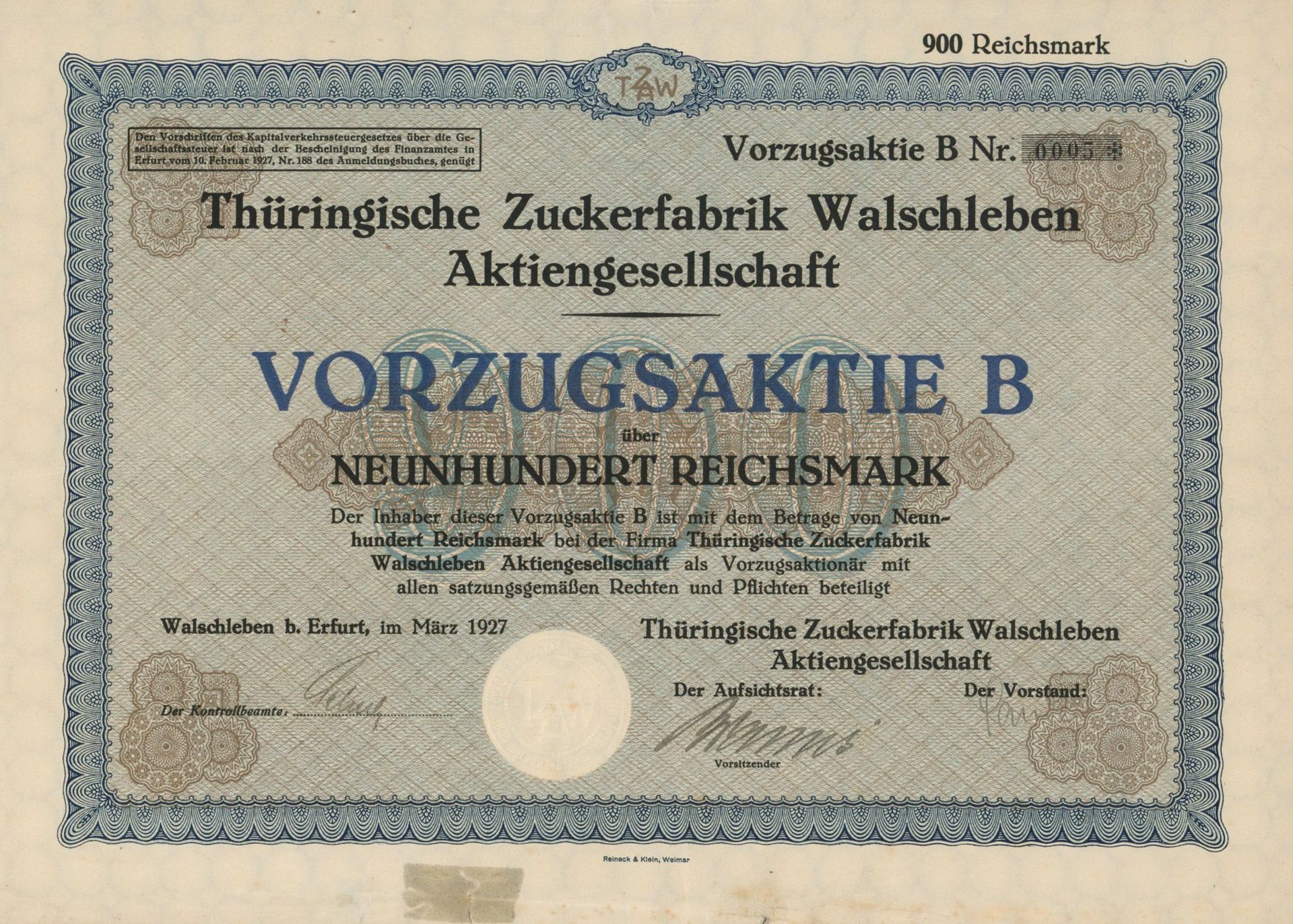 Die älteste bekannte deutsche Aktie aus der Zuckerindustrie - eine Raffinerie in Königsberg.