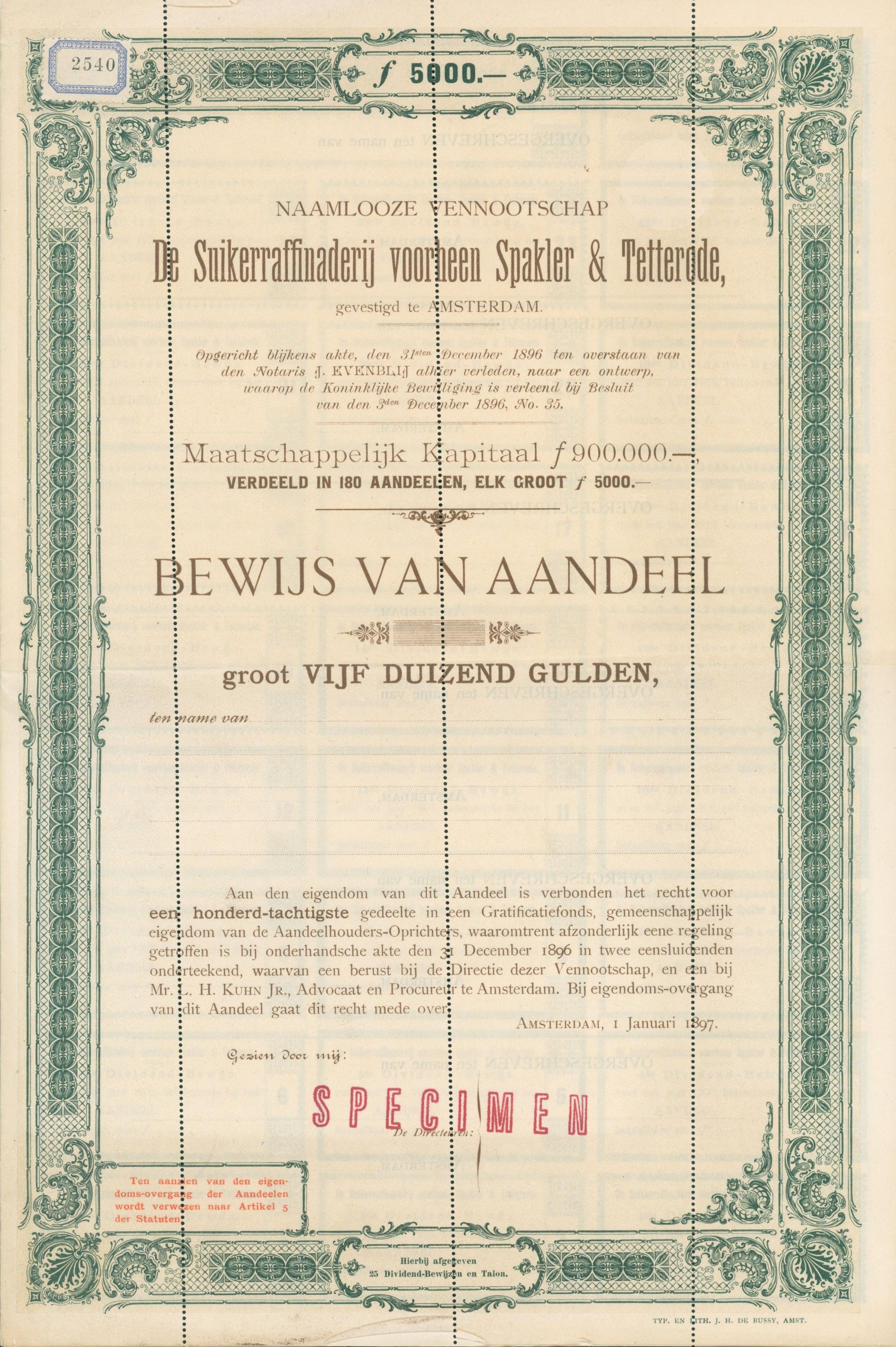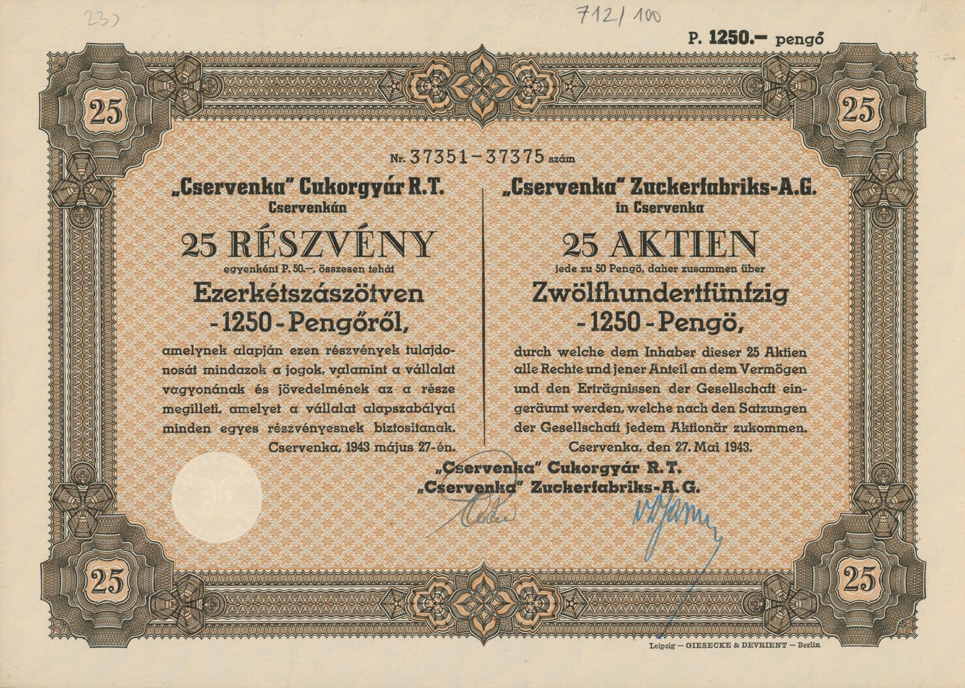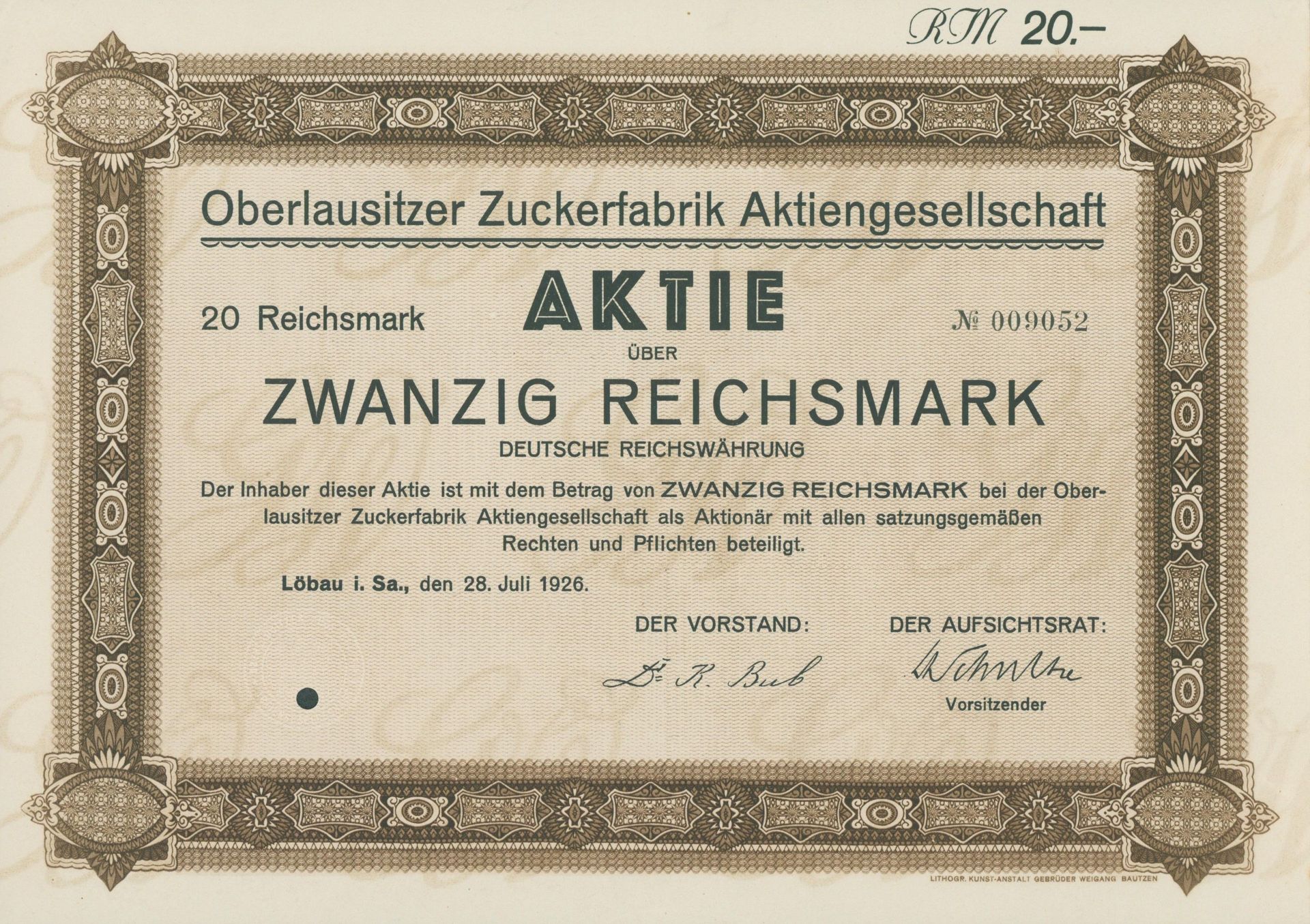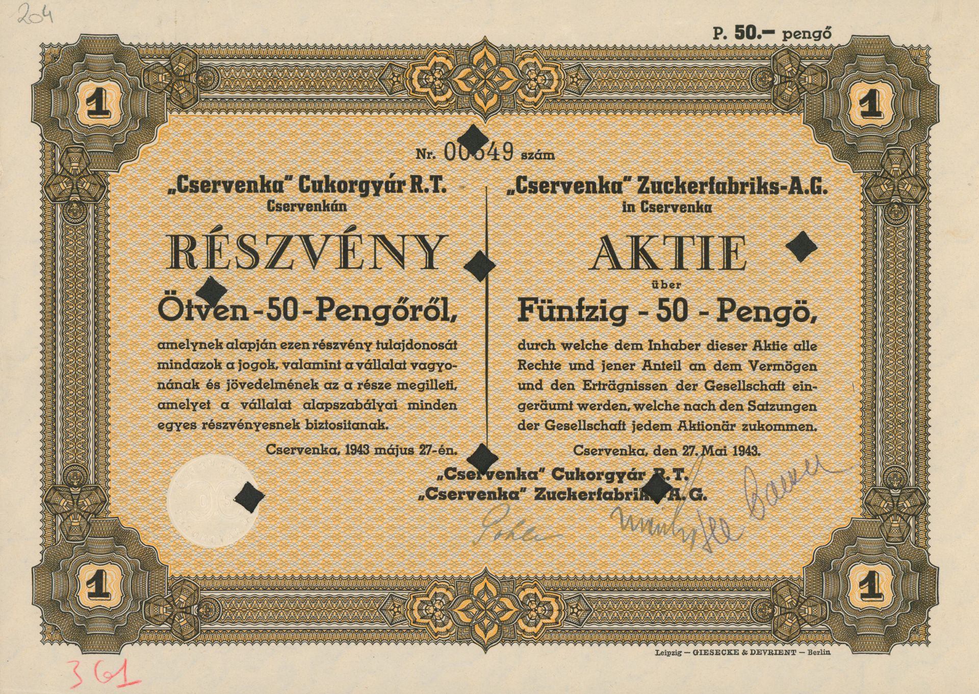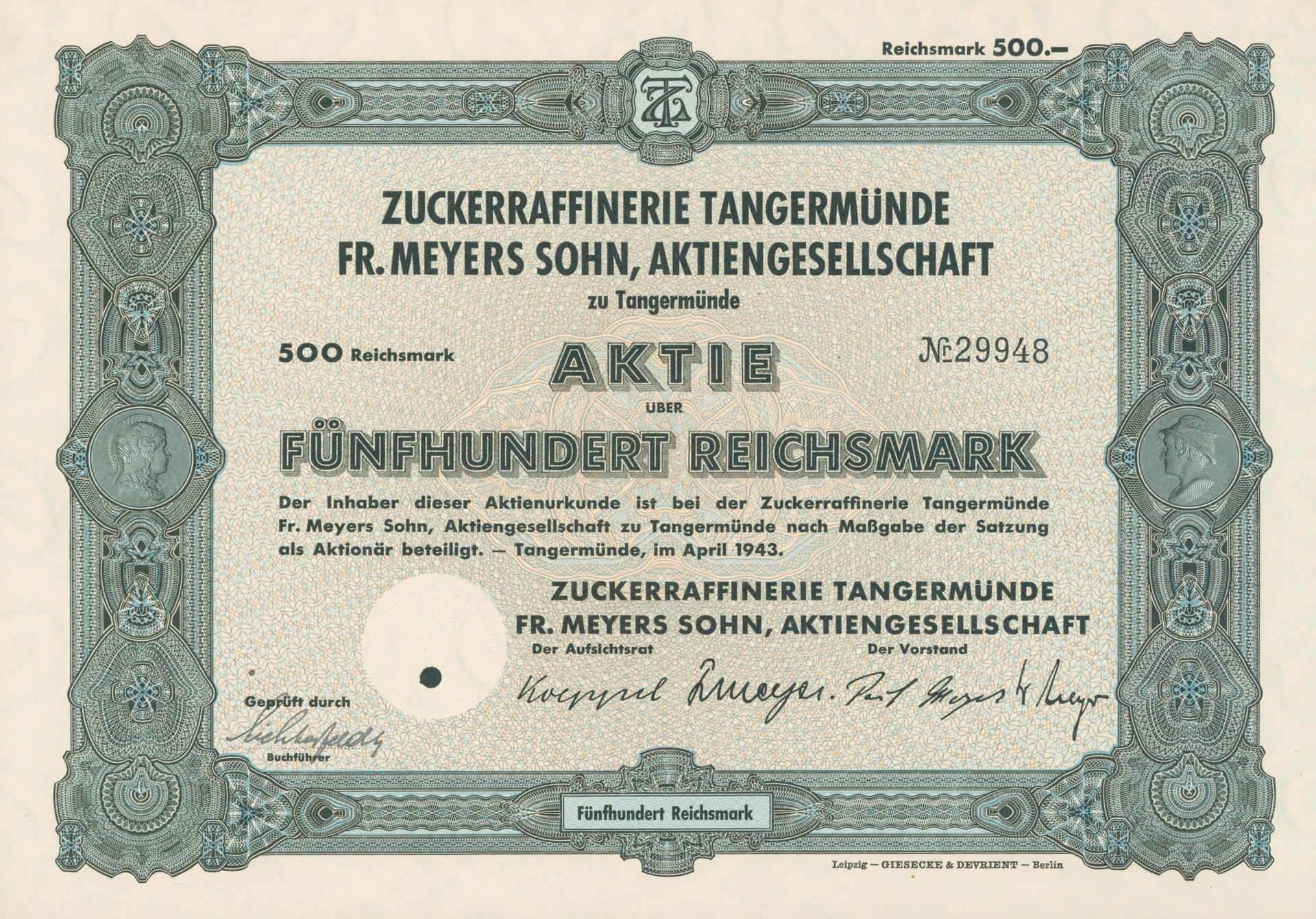 Die älteste bekannte deutsche Aktie aus der Zuckerindustrie - eine Raffinerie in Königsberg.