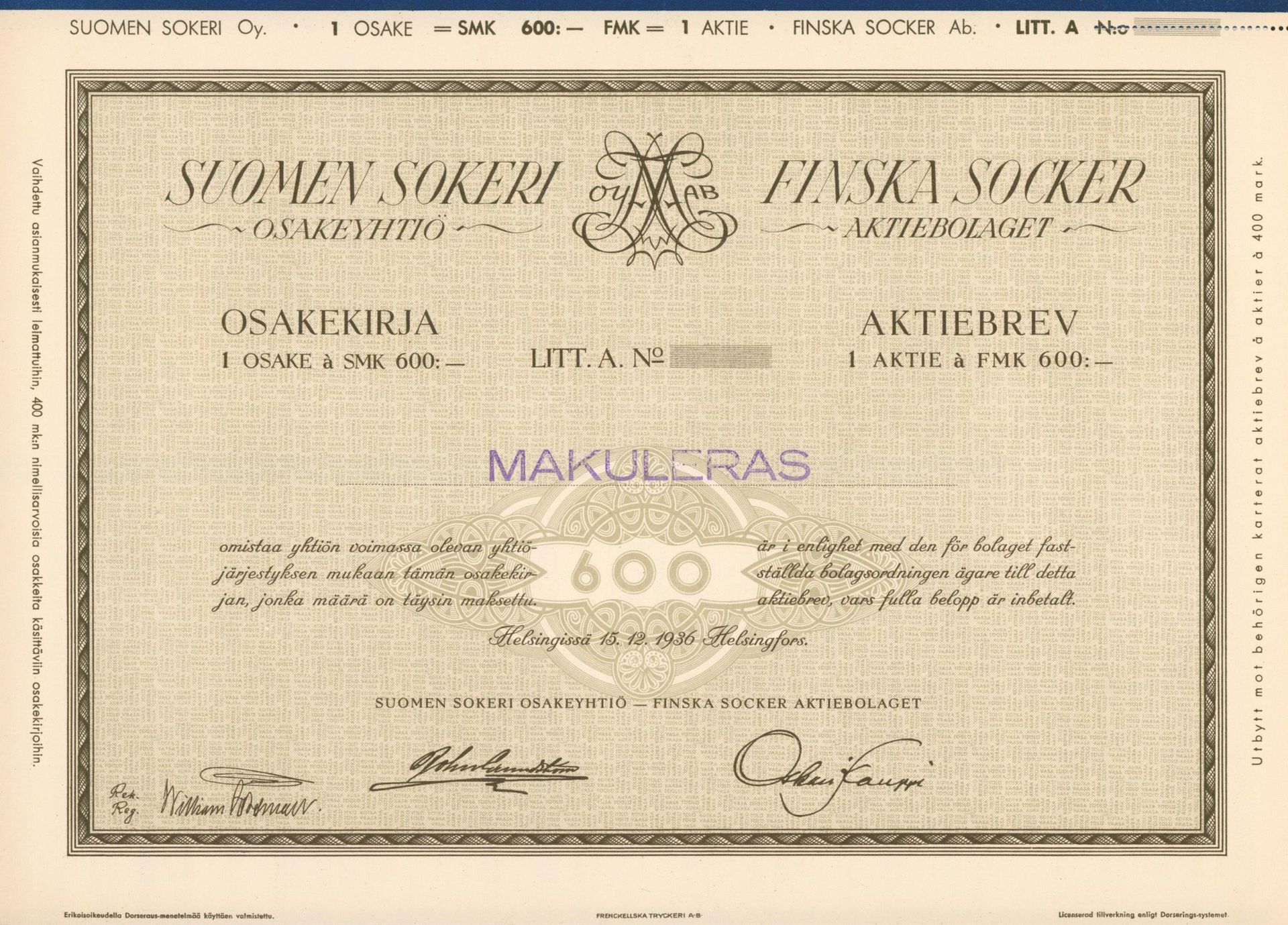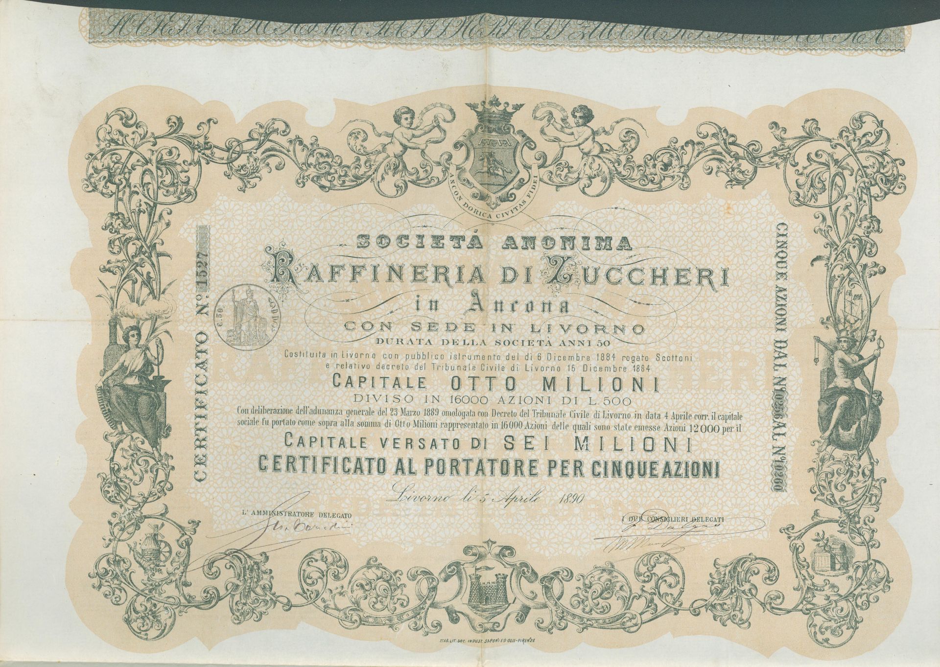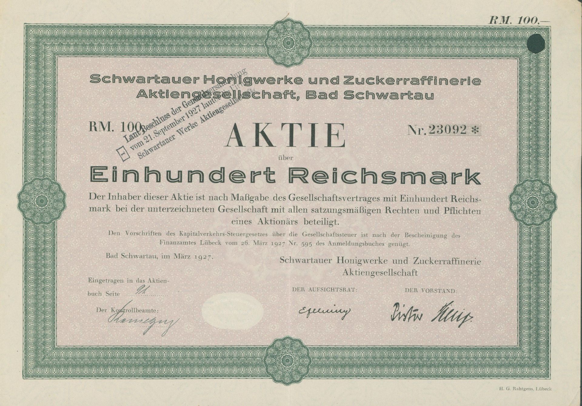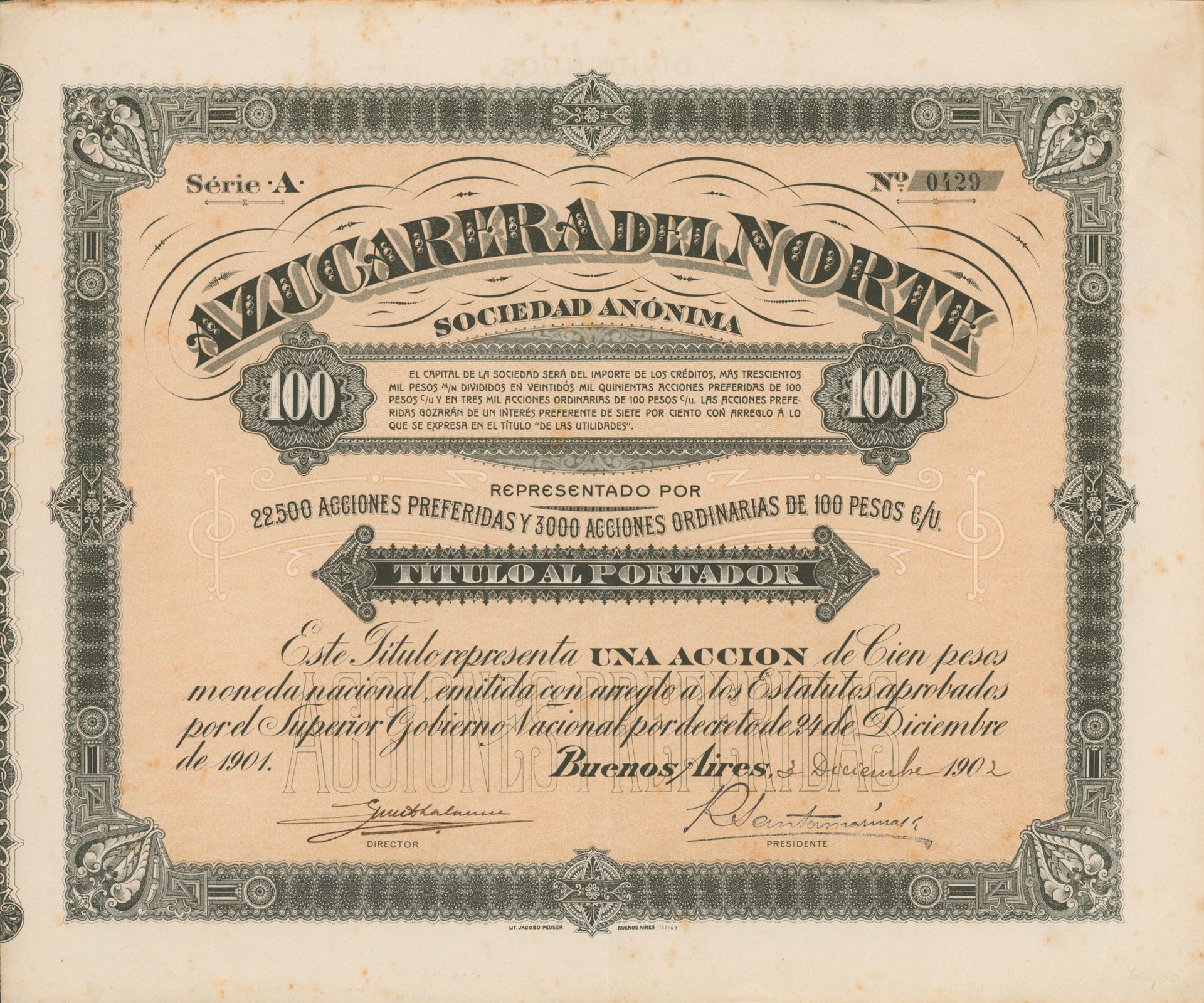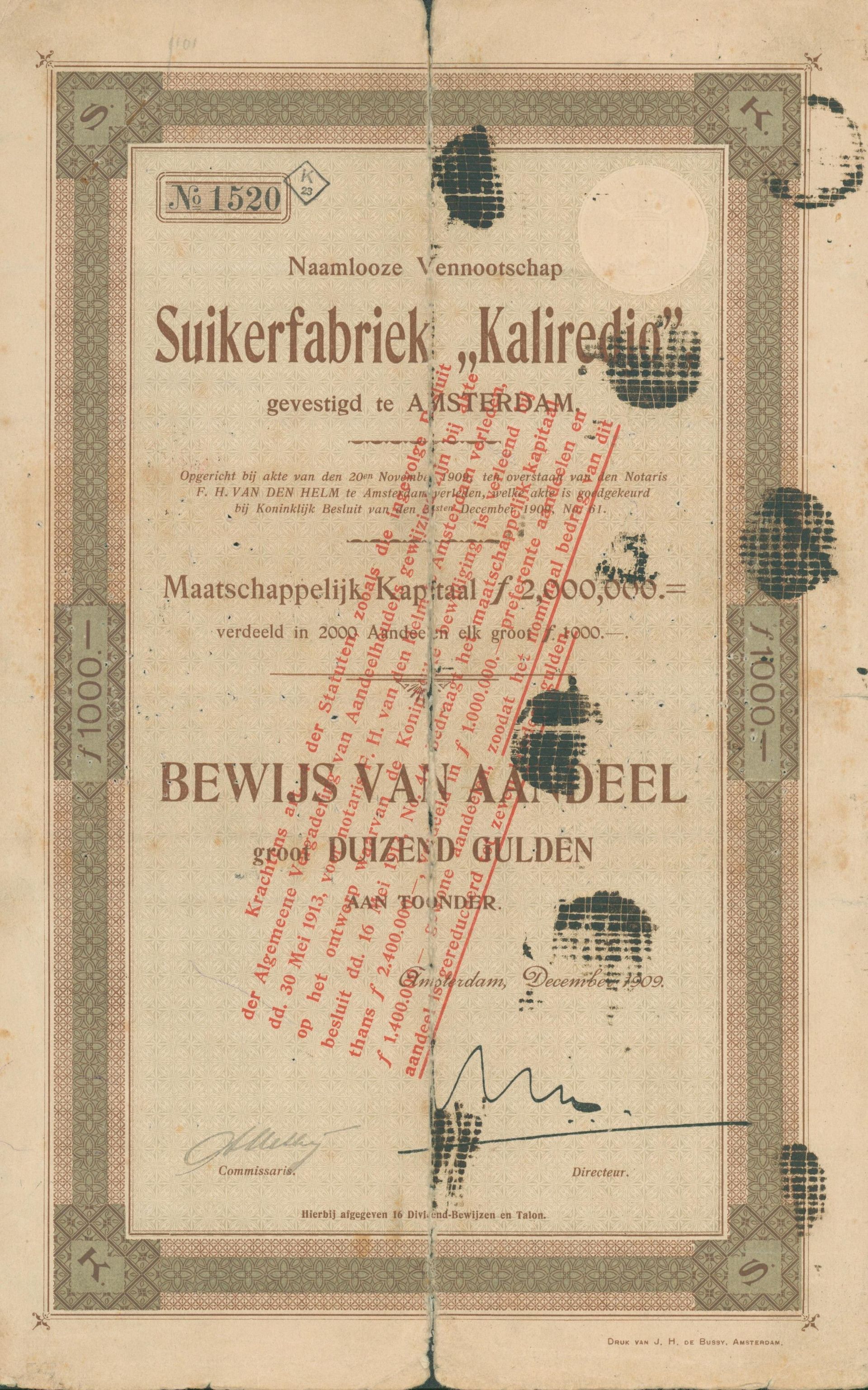 Die älteste bekannte deutsche Aktie aus der Zuckerindustrie - eine Raffinerie in Königsberg.