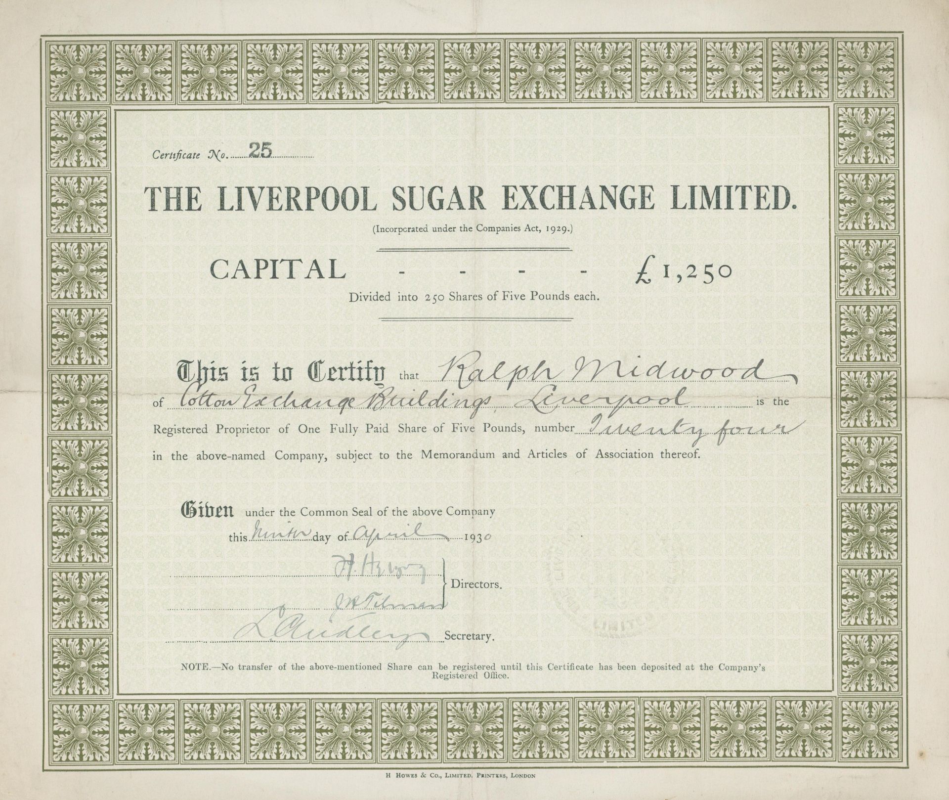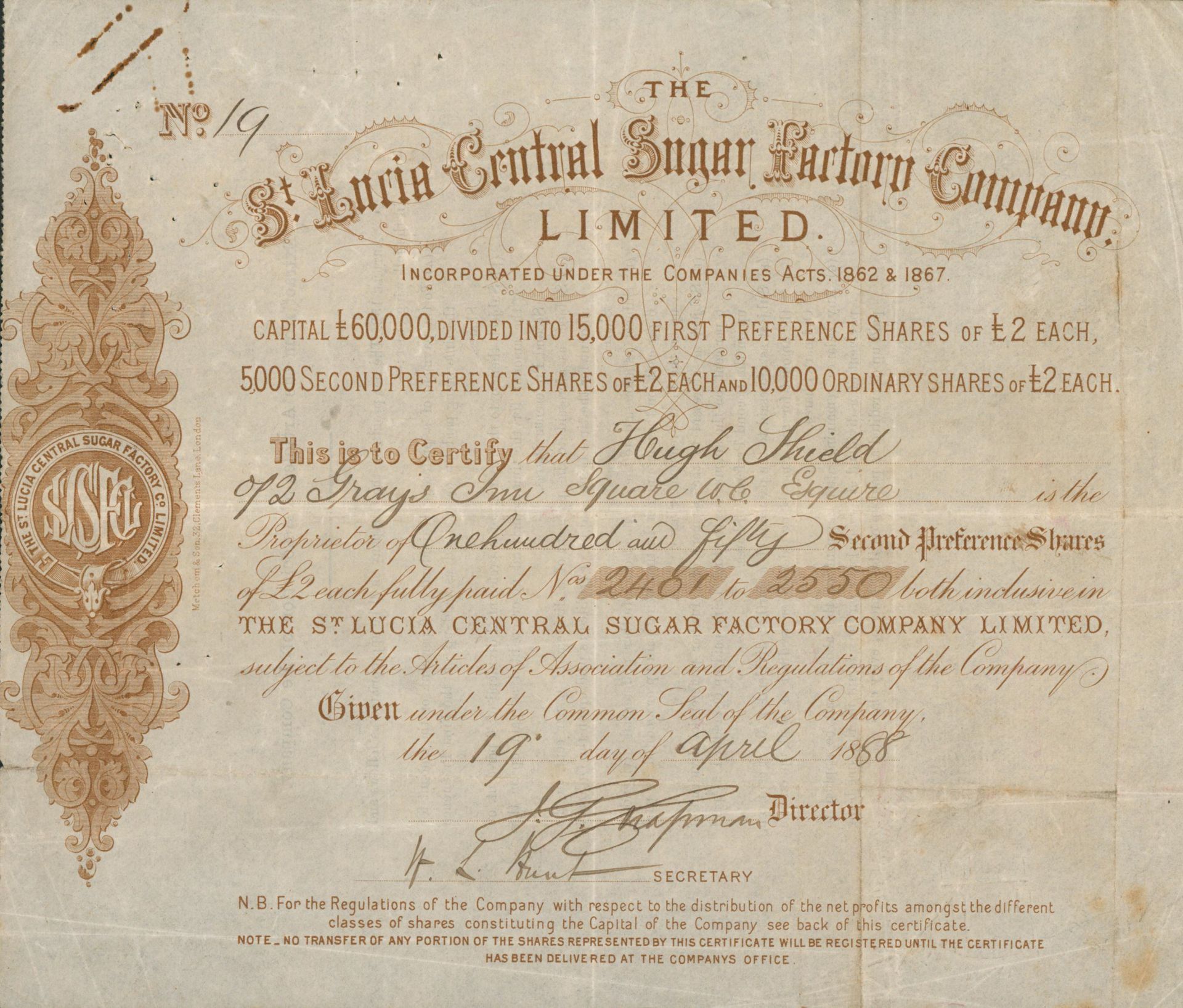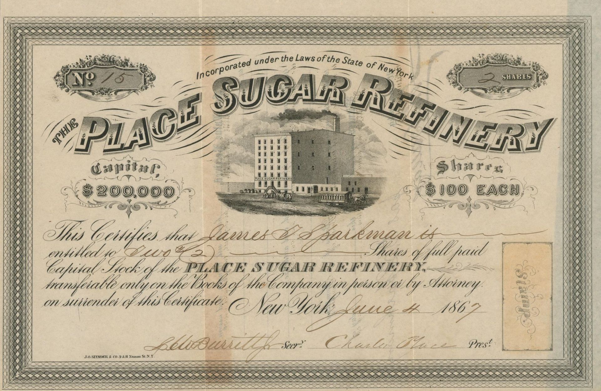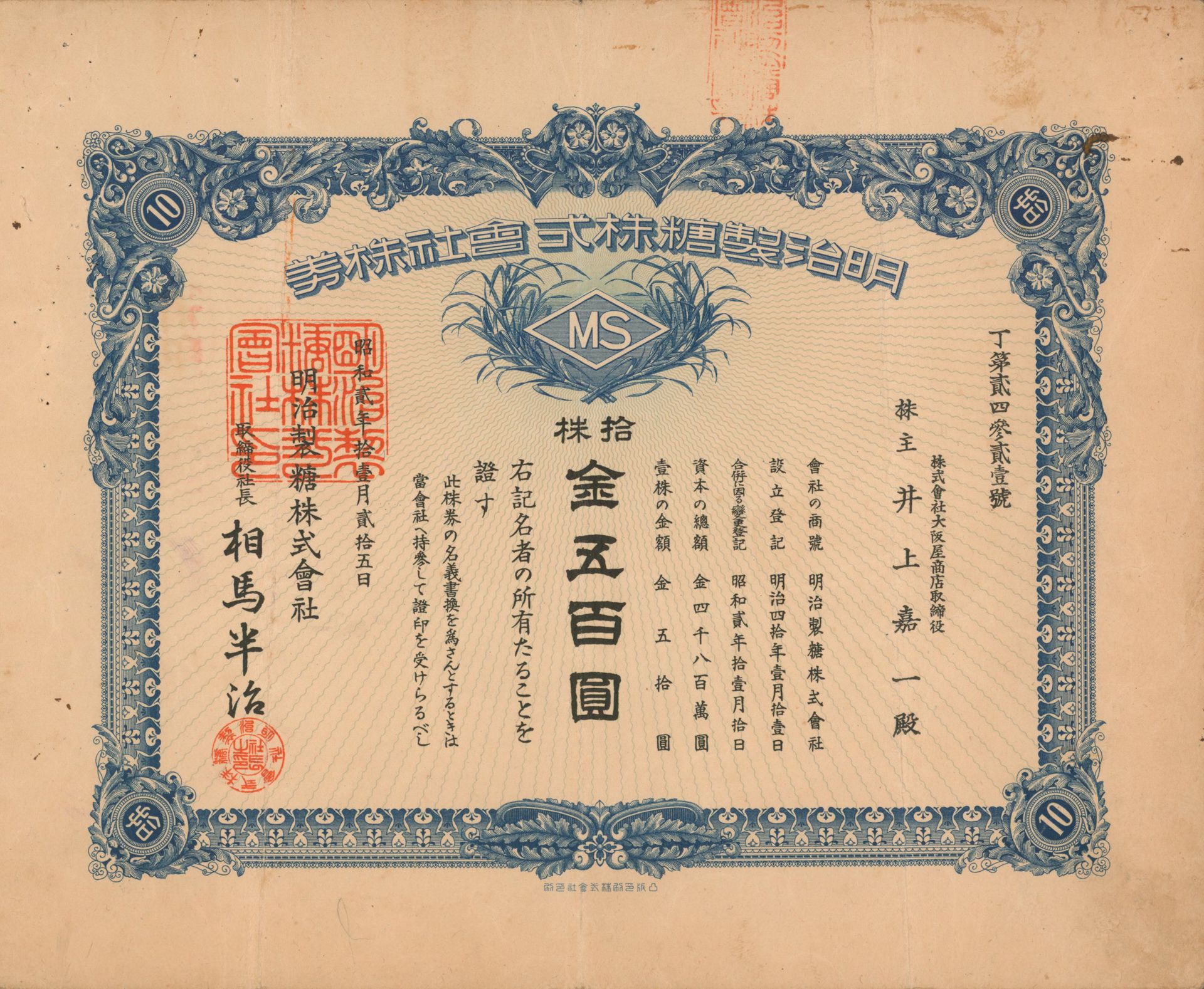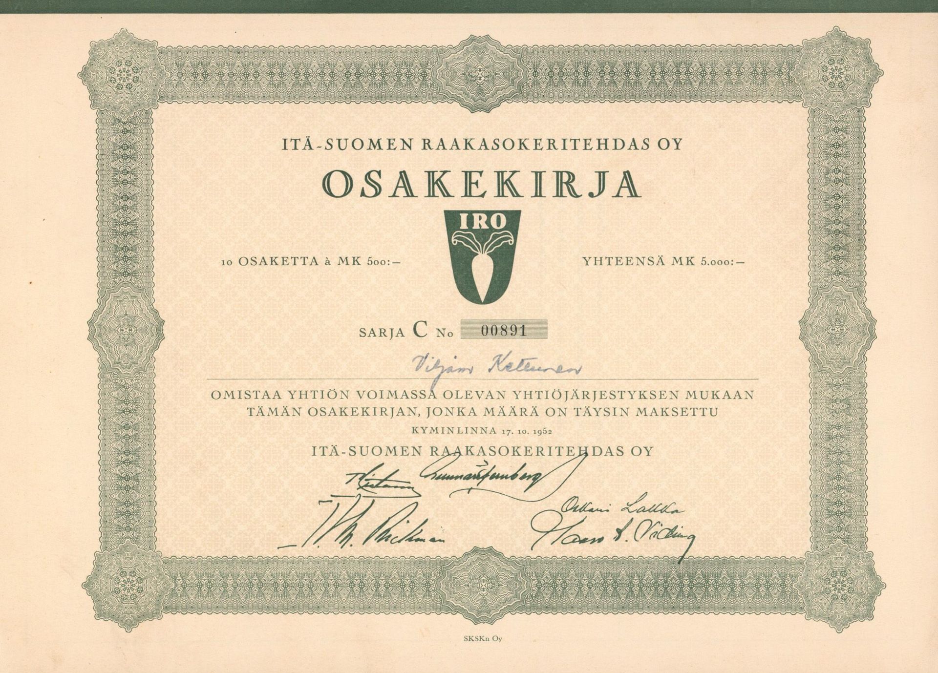 Die älteste bekannte deutsche Aktie aus der Zuckerindustrie - eine Raffinerie in Königsberg.