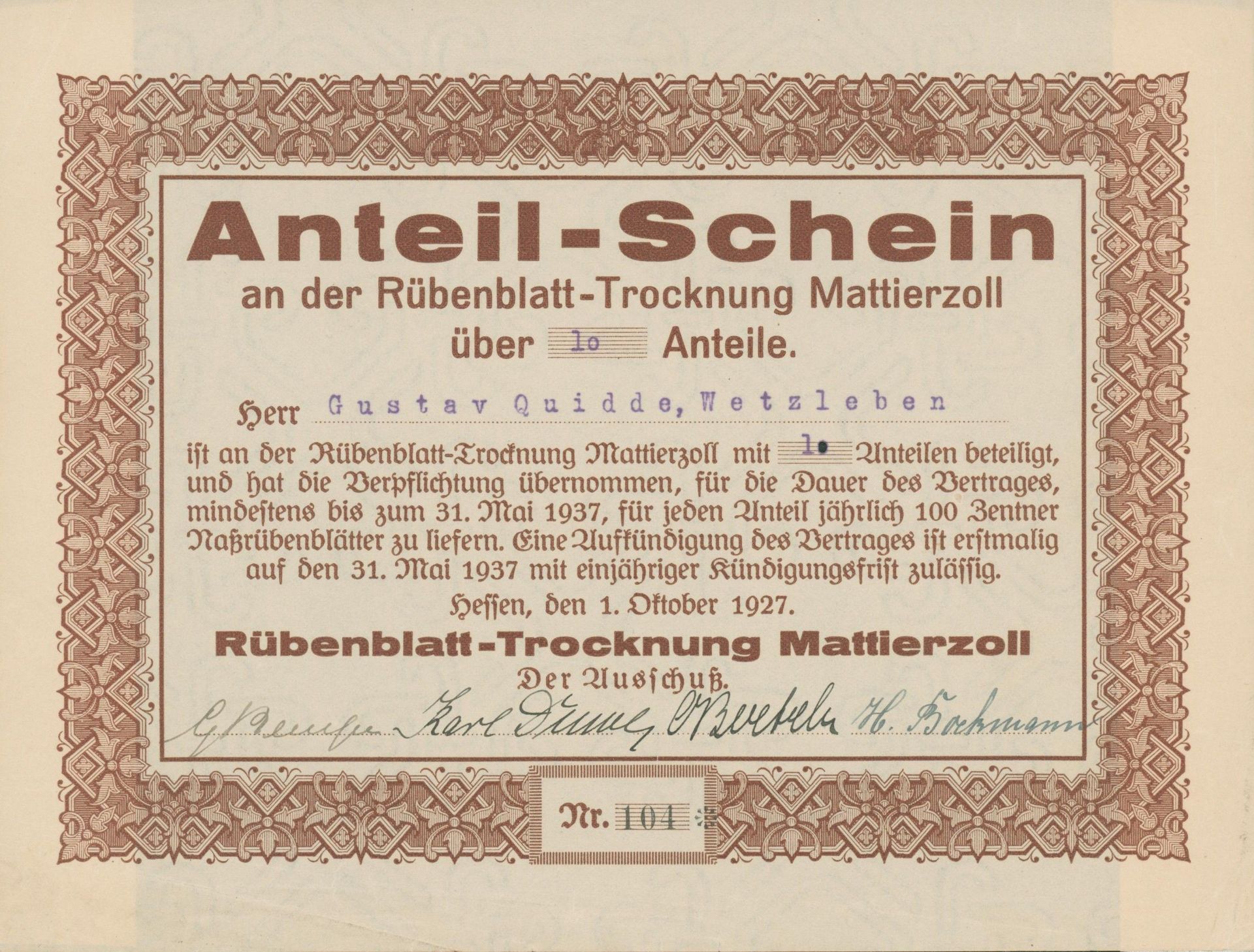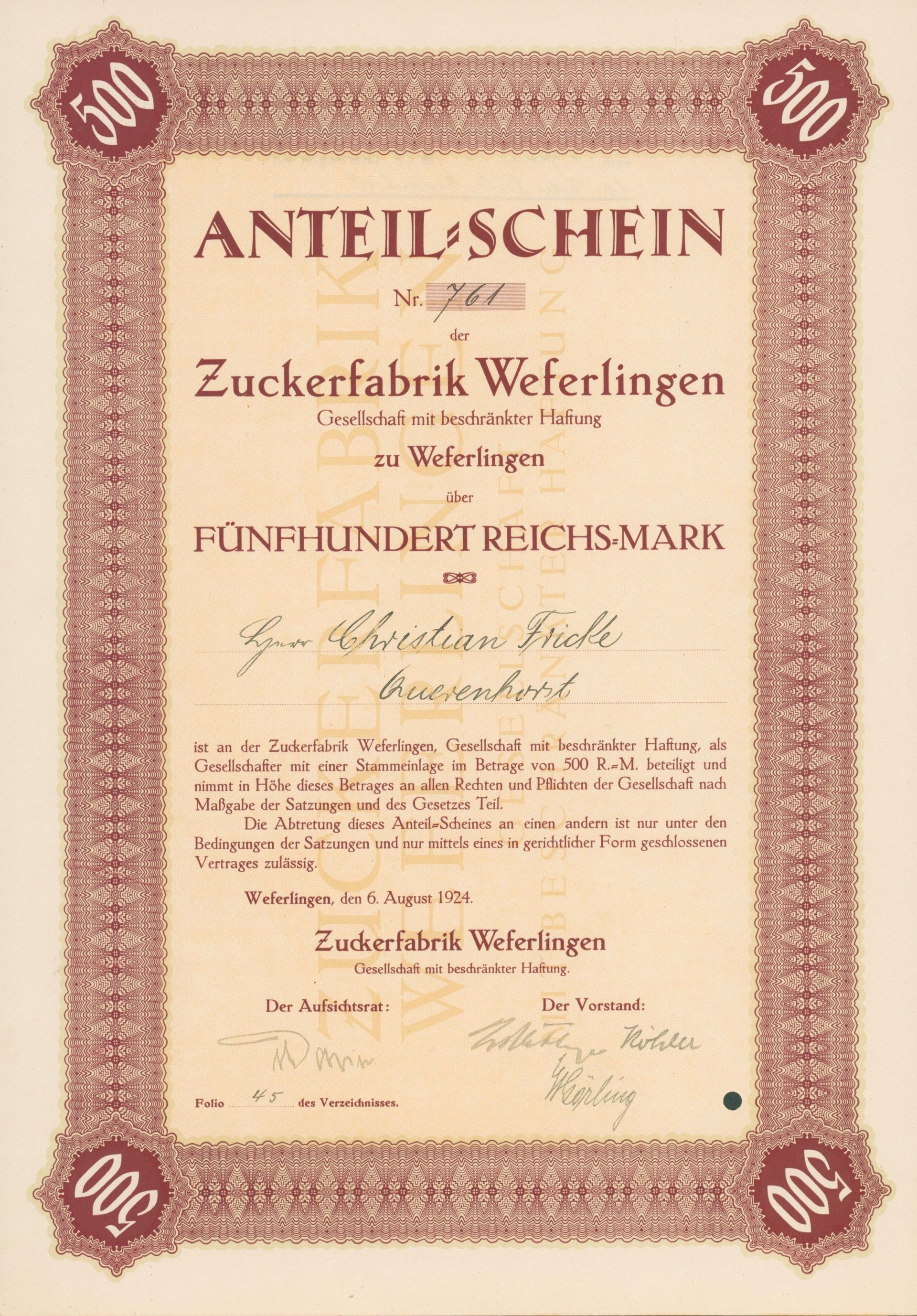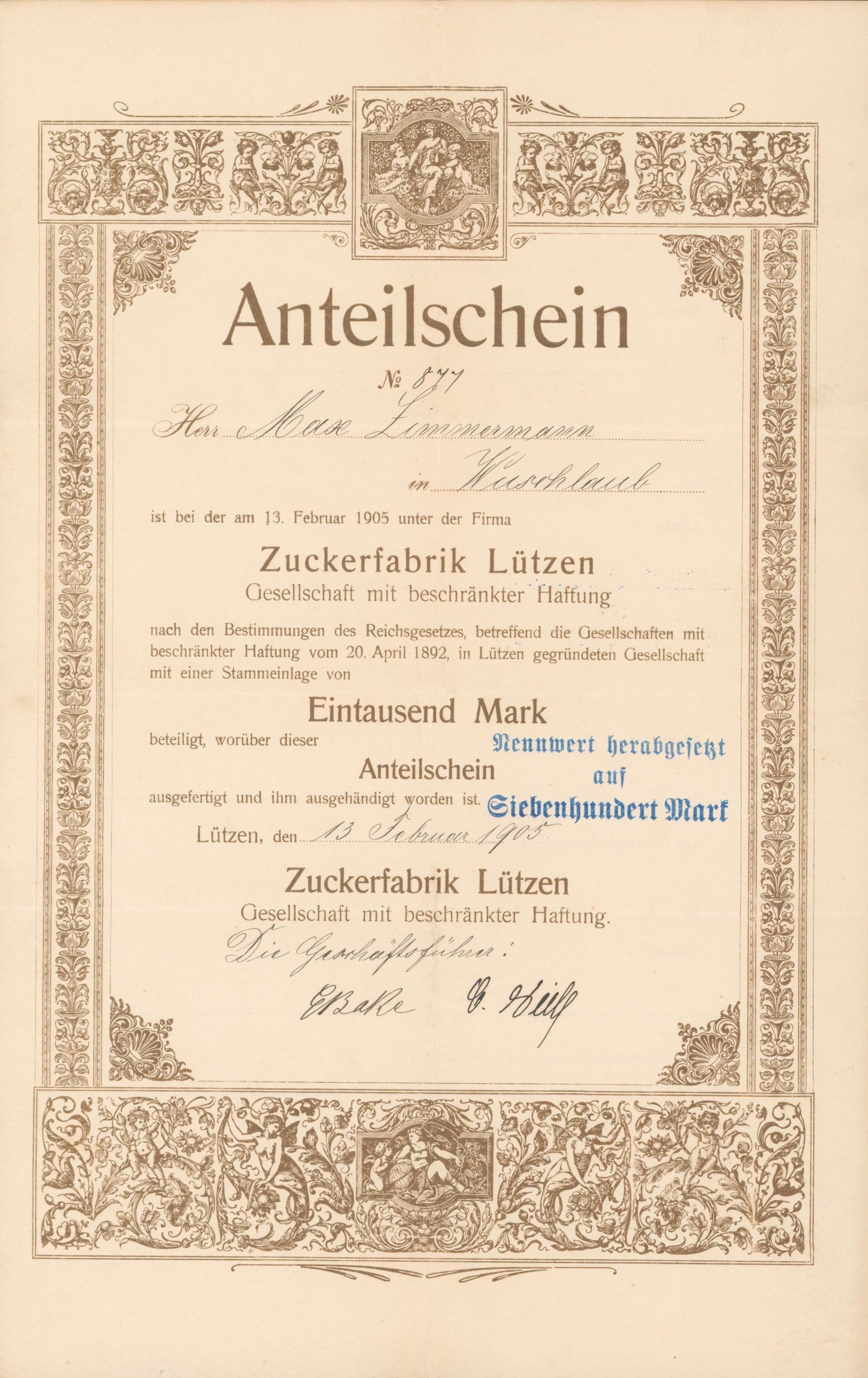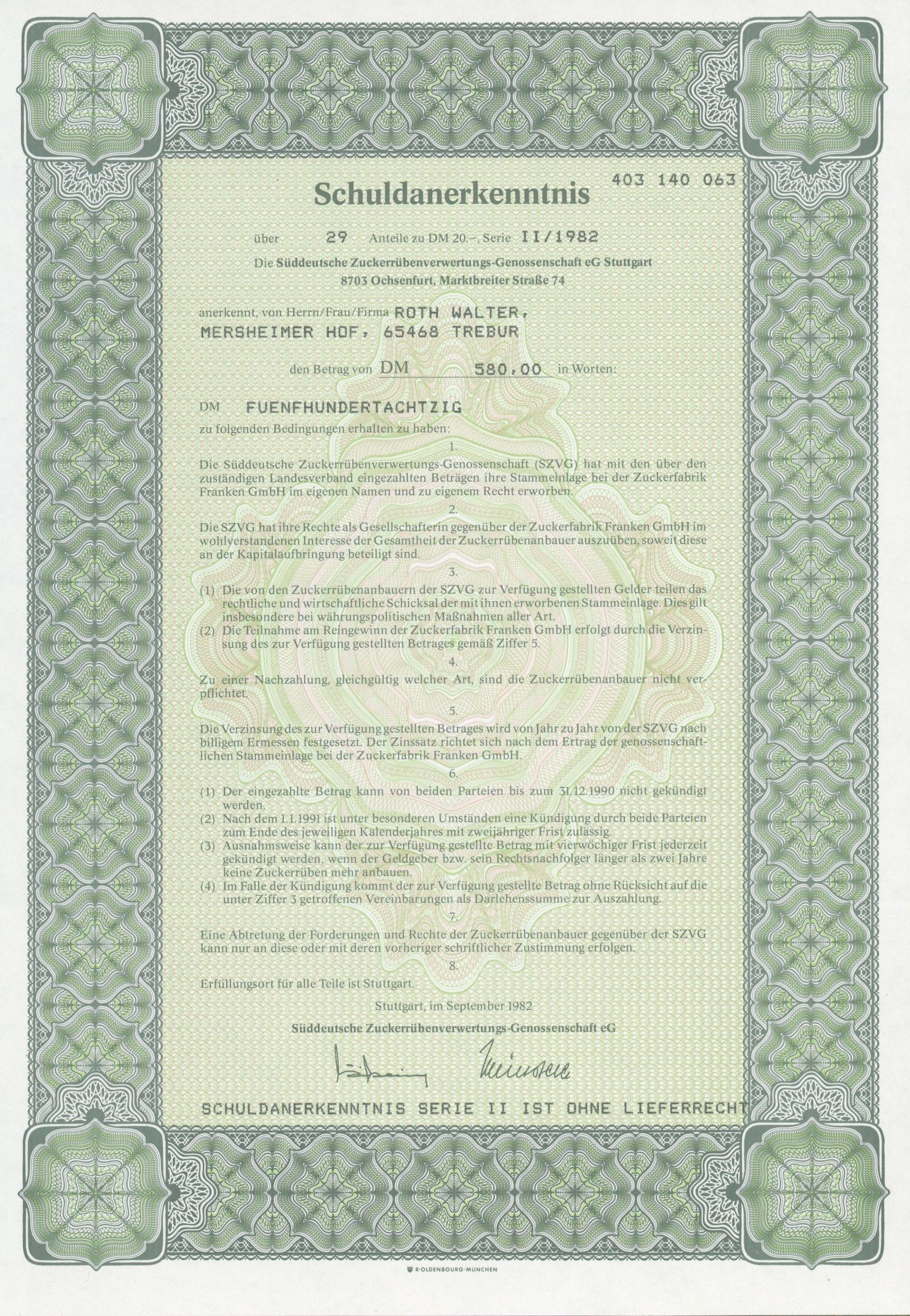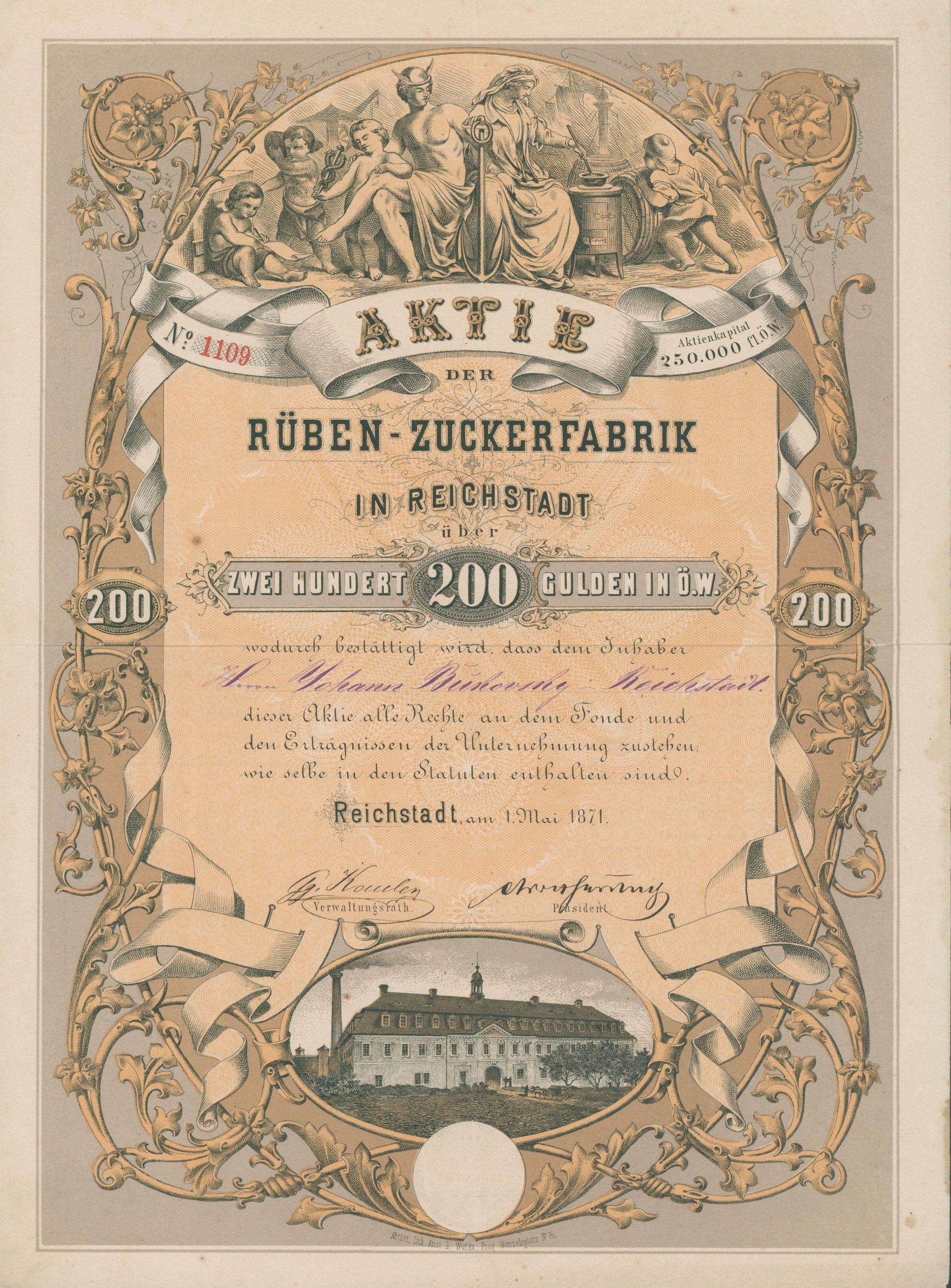 Für den Sammler macht eine thematische Beschränkung Sinn – meist sind es Länder, Regionen oder Branchen. Sonst steht man vor Millionen von Wertpapieren. Bei mir stand der glückliche Zufall Pate. 1990 las ich im Handelsblatt einen Artikel über Historische Wertpapiere und war begeistert, nahm Kontakt mit Reinhild Tschöpe auf und erwarb ein Exemplar der tschechischen Kaurimer Zuckerfabriks-Aktiengesellschaft aus dem Jahr 1871. Ein wunderschöner Druck, über 100 Jahre alt und bestens erhalten mit begrenzter Auflage. Bei näherer Betrachtung stellte ich fest, dass „Zucker“ überhaupt eine gute Branche ist. Viele - aber nicht zu viele - Wertpapiere, häufig dekorativ und als Industrie fast überall präsent, wo Menschen leben. Gerade in Deutschland ist die Zuckerindustrie eine der ersten Industrien, die flächendeckend bedeutend wird und häufig mit interessanter lokaler Geschichte verbunden. Und dann gibt es noch den persönlichen Bezug: Mein Großvater baute Rüben an, die er an das Südzuckerwerk in Groß-Gerau lieferte. Als kleiner Junge durfte ich mit und erinnere mich an meine Angst mit den Rüben weggeschwemmt zu werden – und daran wie gerne ich meinen Großvater bei der Arbeit begleitete. Das auf ihn ausgestellte Schuldanerkenntnis der Südzucker aus dem Jahr 1977 ist nicht das schönste aber doch das emotionalste Wertpapier in meiner Sammlung.