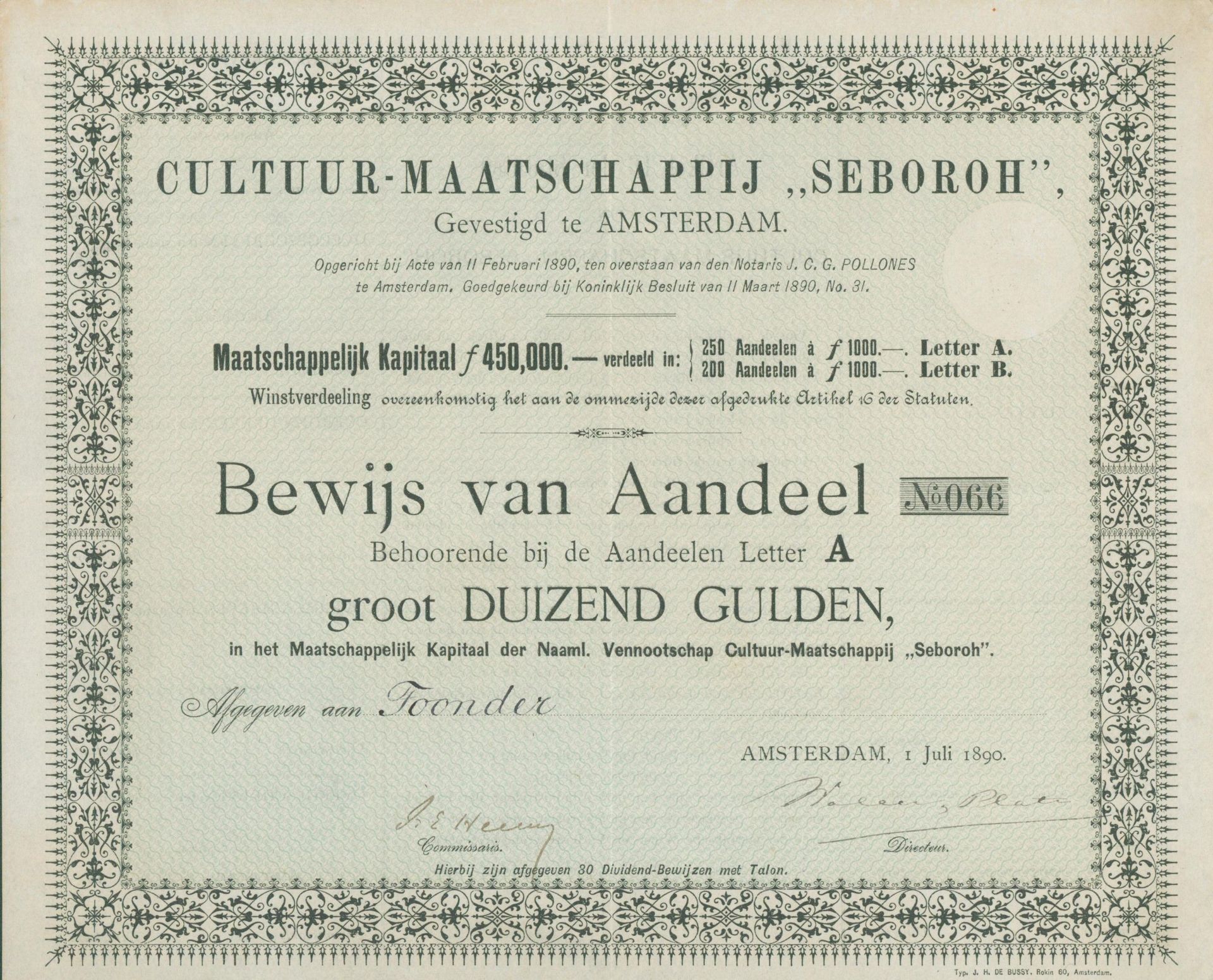 Aktie | 1. Juli 1792