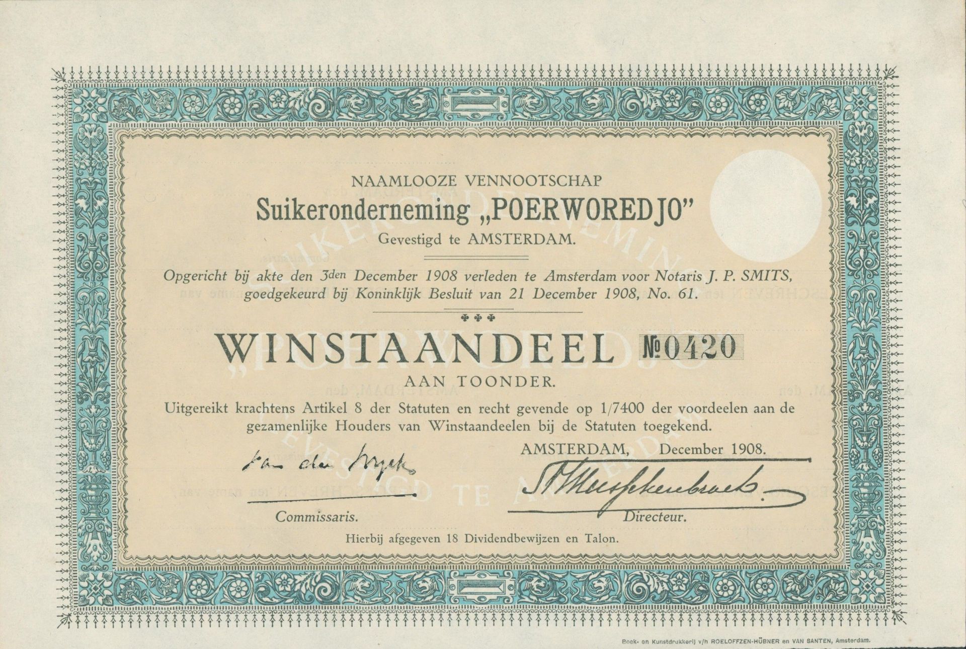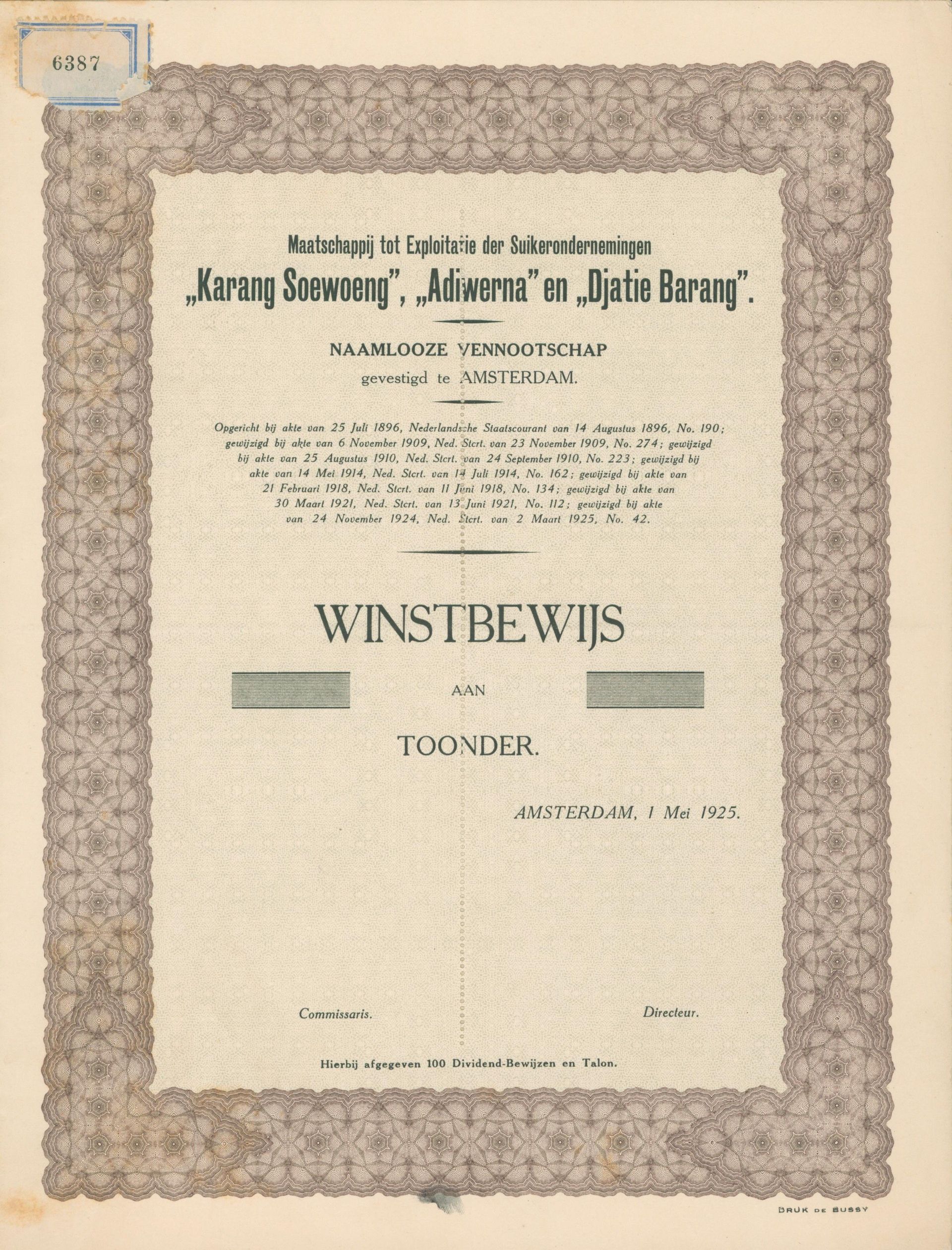 Im Laufe der Zeit werde ich meine Sammlung beginnend mit Deutschland möglichst komplett zeigen und die Wertpapiere um Artikel und Varia ergänzen. Mittlerweile habe ich rund 1400 Wertpapiere erfasst und neben den deutschen Wertpapieren (ca 420) auch die Darstellung der Wertpapiere von Gesellschaften, die auf der indonesischen Insel Java aktiv waren (ca. 240) sowie der niederländischen Unternehmen (ca. 110), Belgiens (über 50) und der USA (rund 200) sowie Kuba (rund 70) abgeschlossen. Auch das Verlinken von anderen Webseiten mit passenden Themen will ich angehen. Gerne werde ich hier auch passende Artikel anderer Autoren einbauen und freue mich natürlich auch über Mails - und über Angebote von Stücken, die mir noch fehlen!