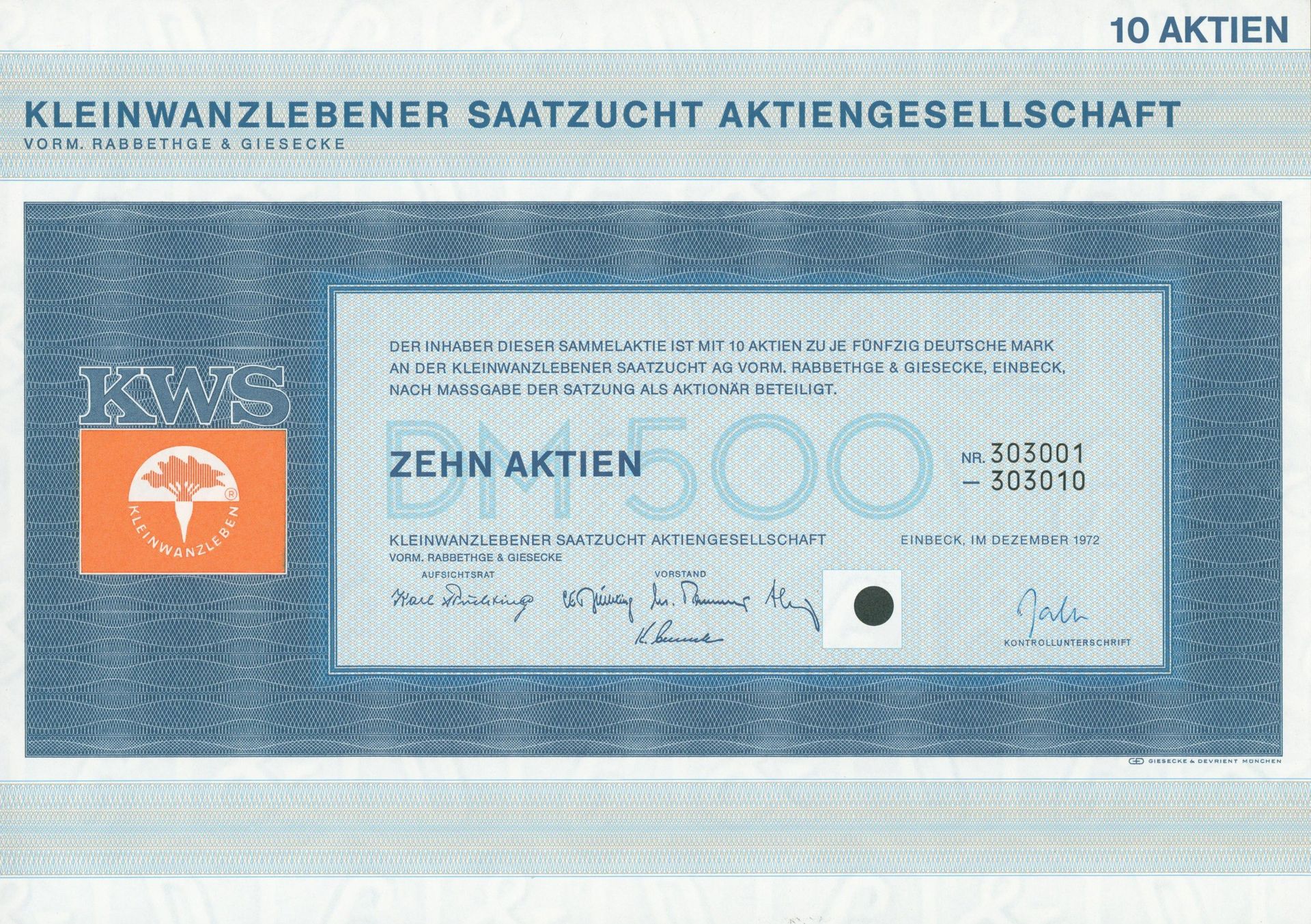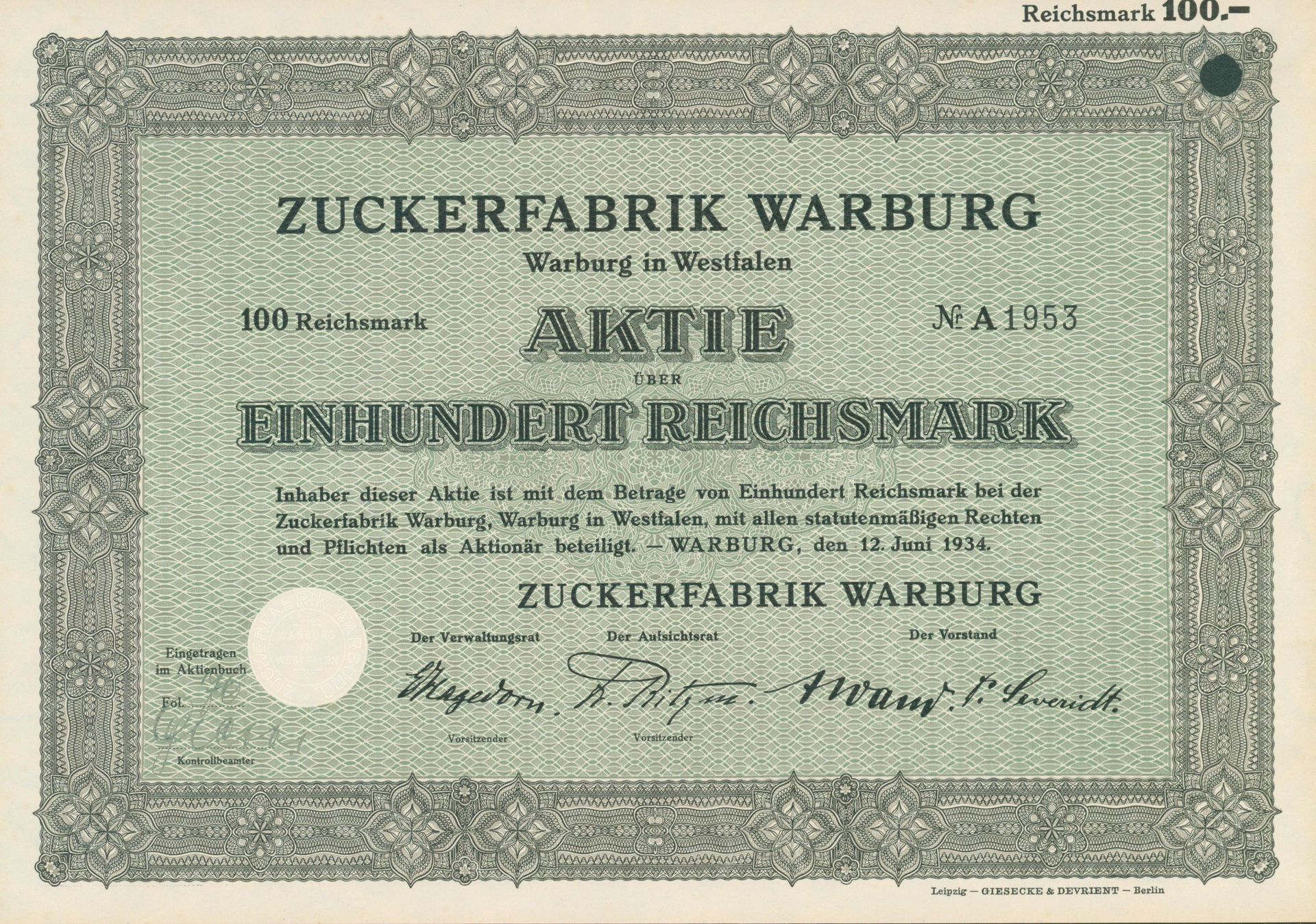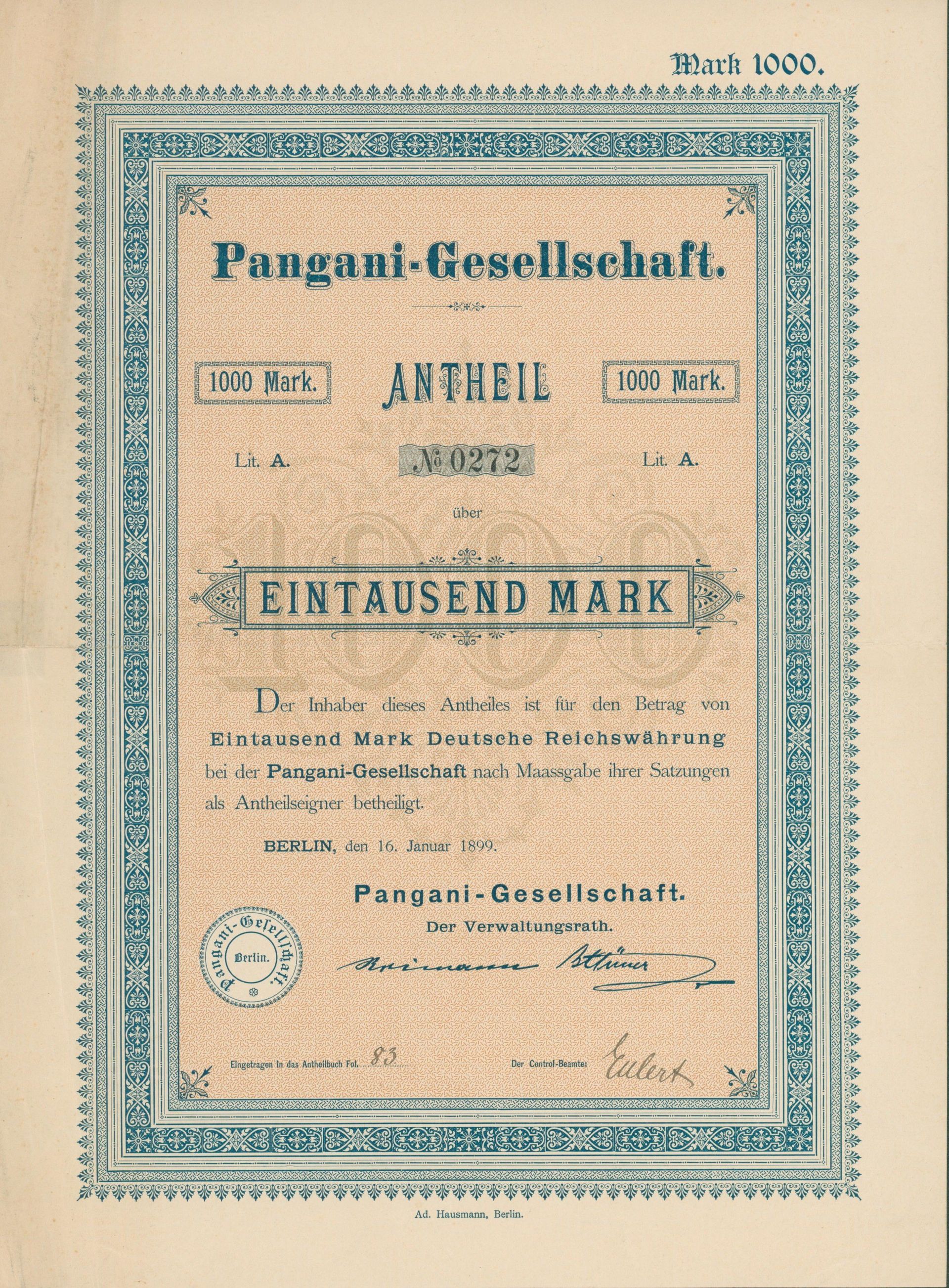 Die wohl älteste deutschsprachige Aktie