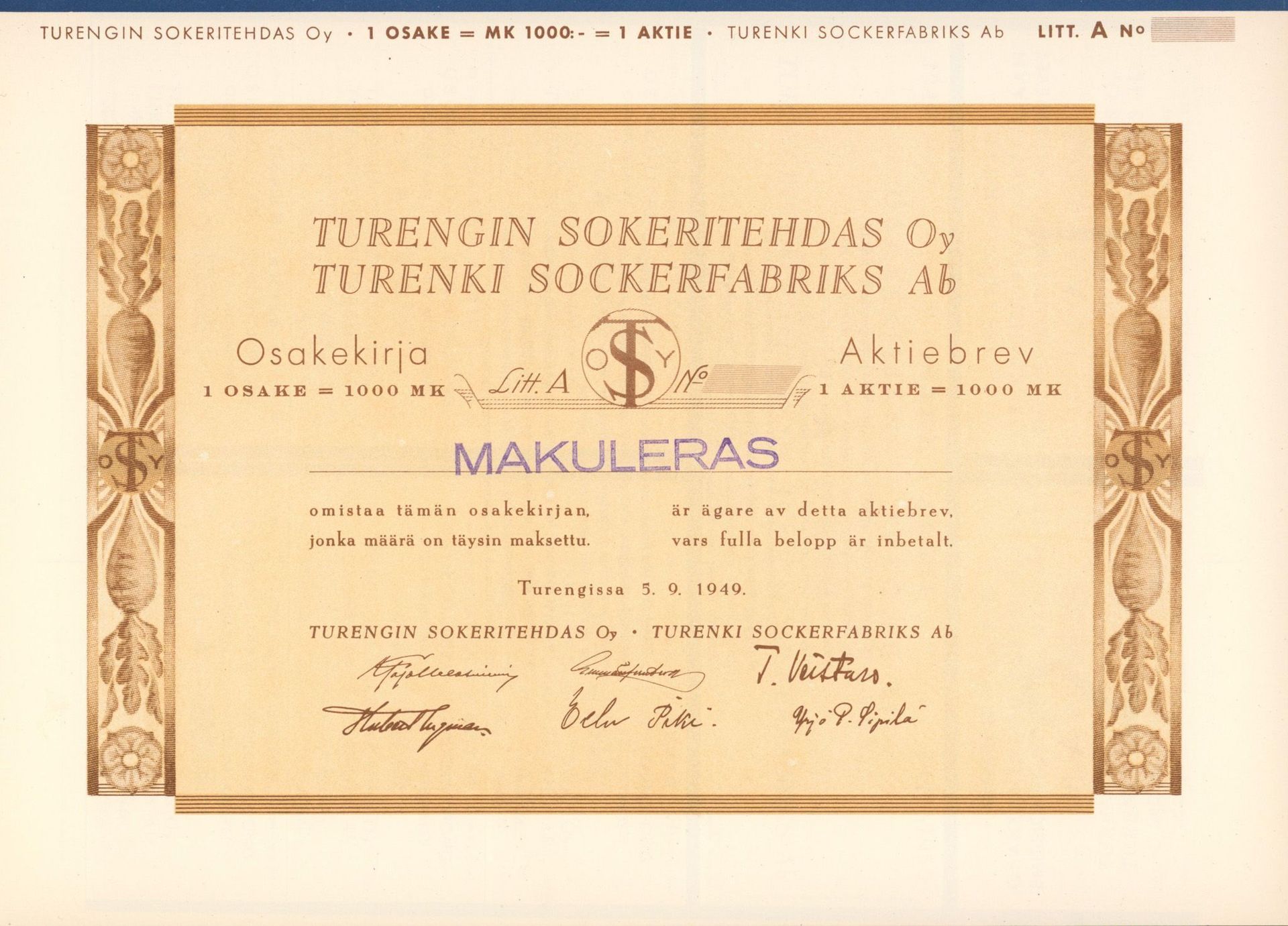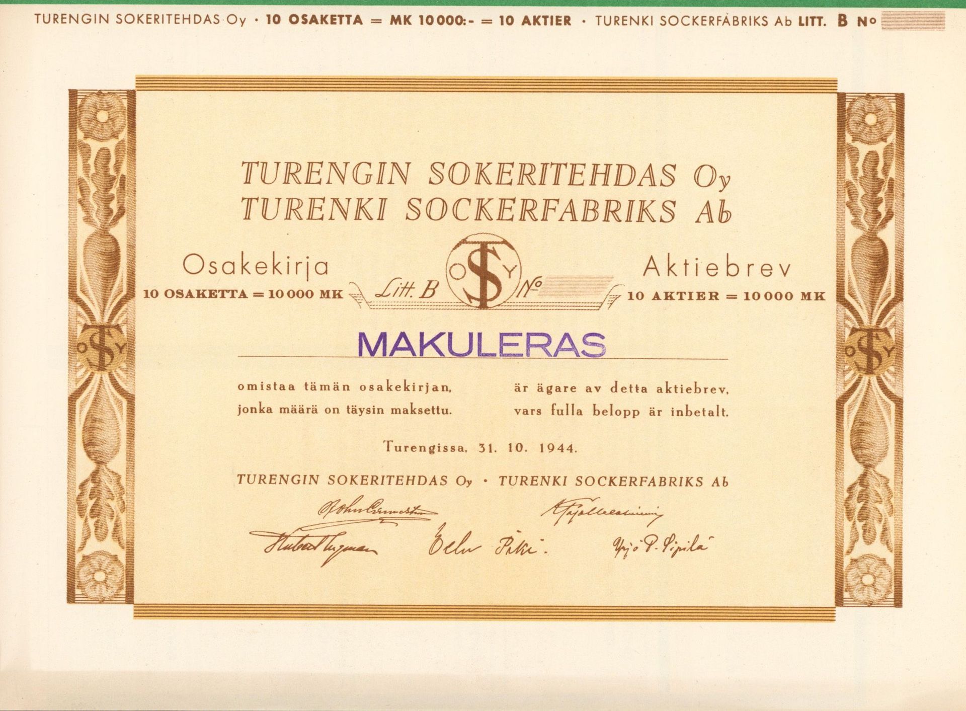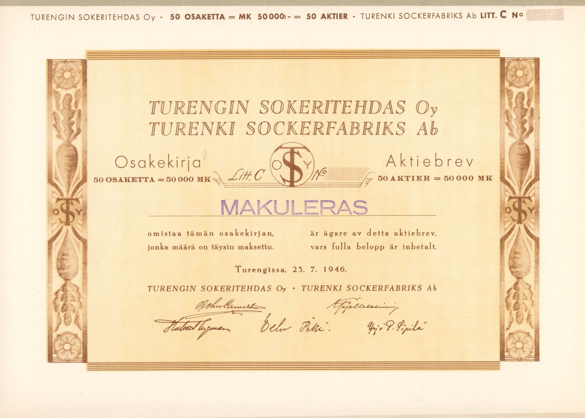 Poland 1917 -1939. The sugar industry and its scripophily