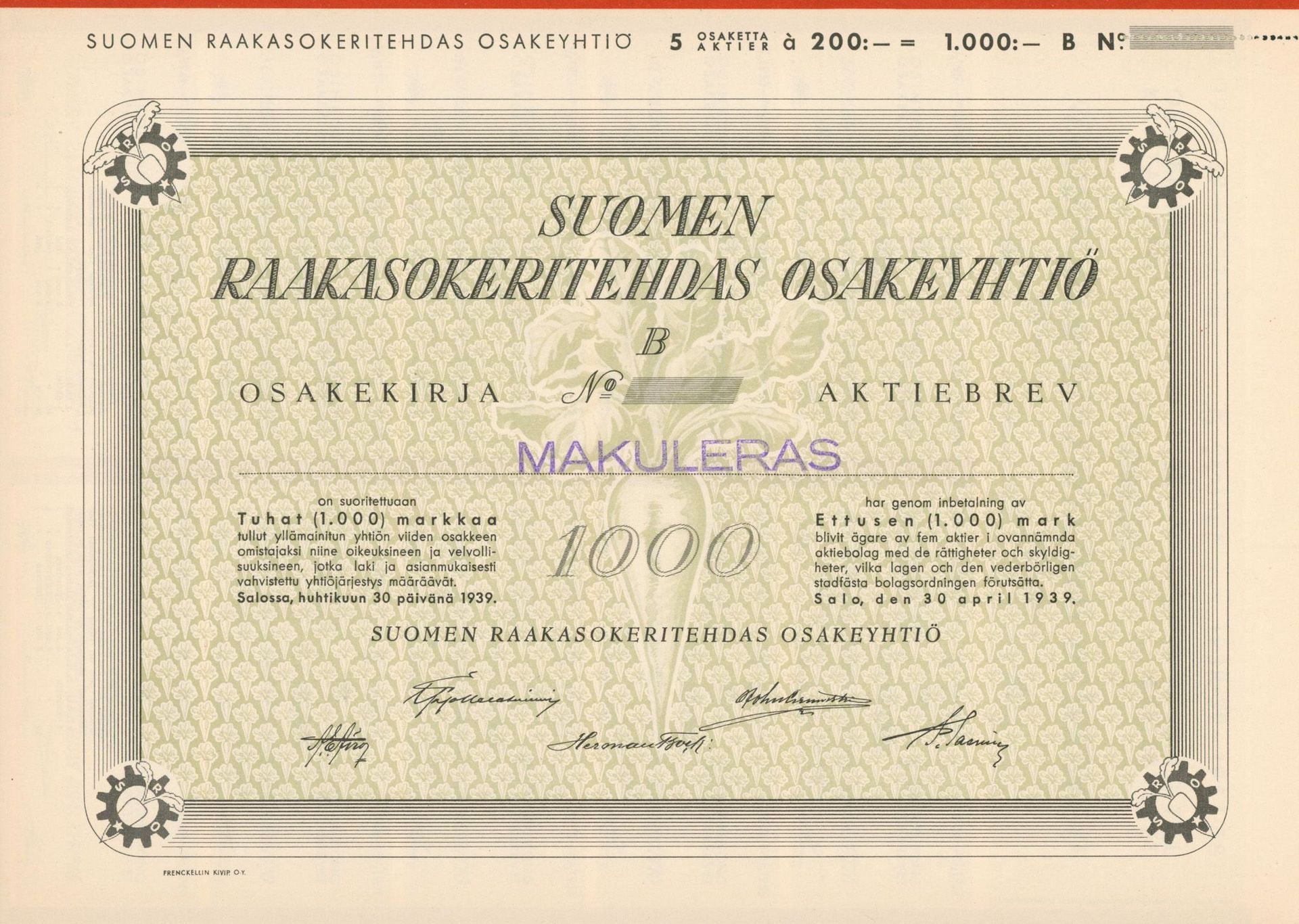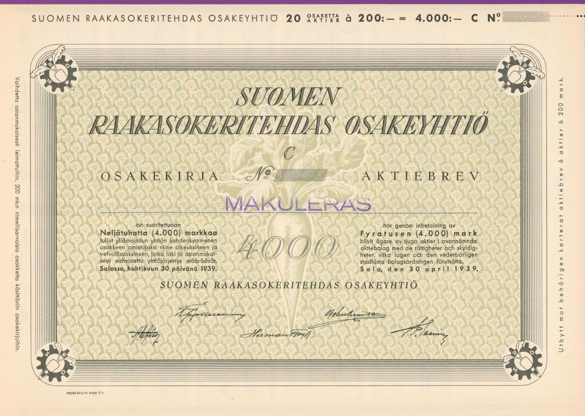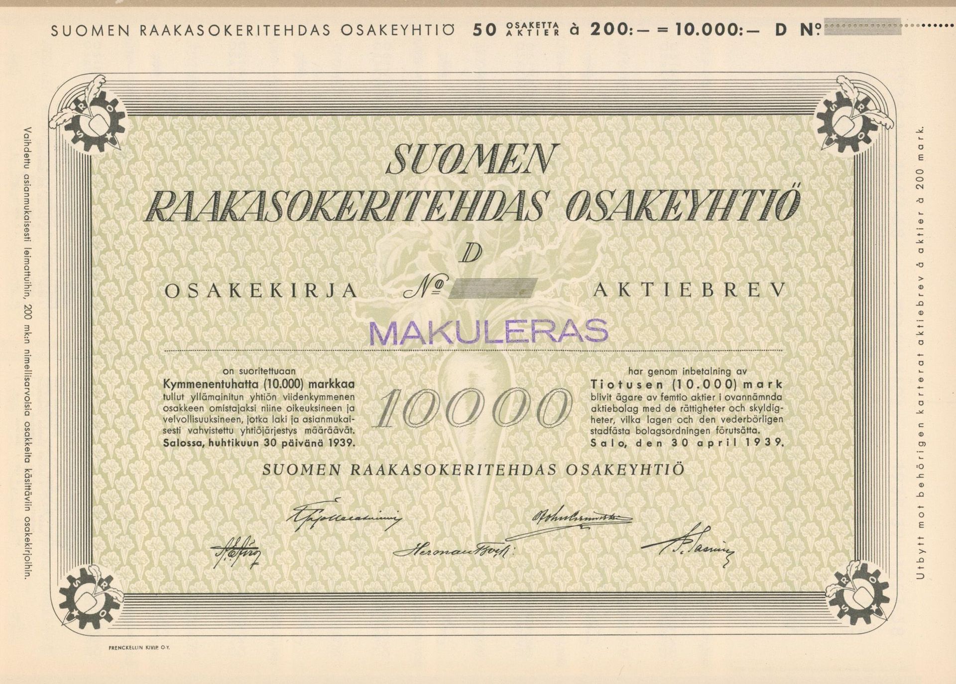 Poland 1917 -1939. The sugar industry and its scripophily