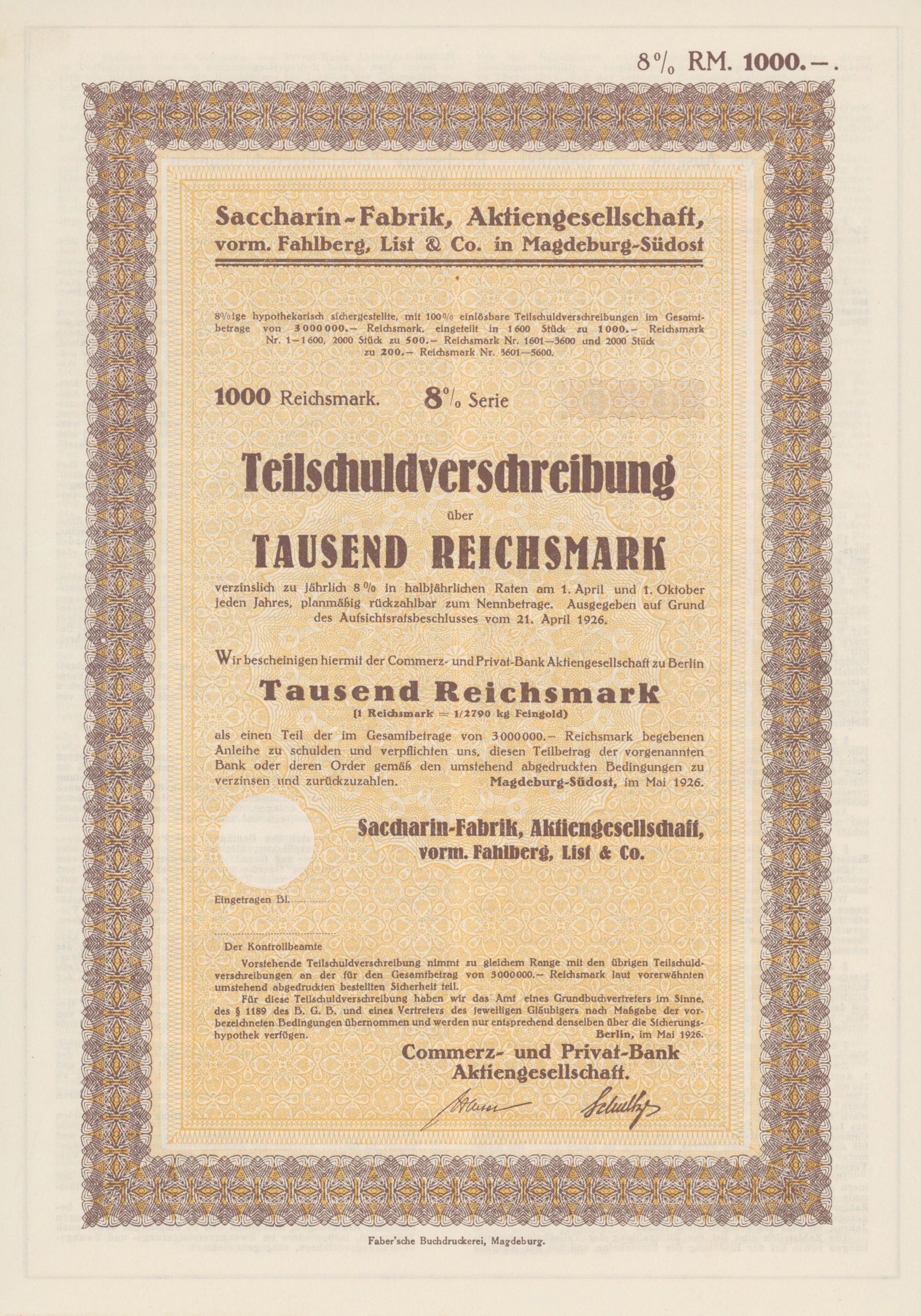 "Complete" list of German sugar certificates