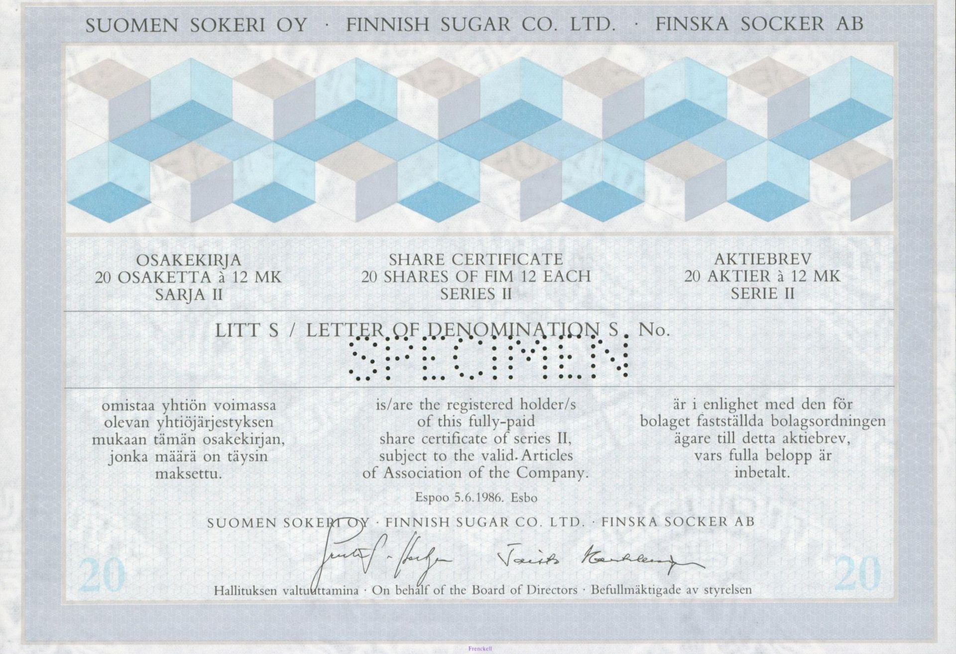 in meinem „virtuellen Museum Fraikin“. Schwerpunkt ist Darstellung einer der größten Sammlungen historischer Wertpapiere mit Bezug auf die Zuckerindustrie vom 18. bis ins späte 20. Jahrhundert aus vielen Ländern und (fast) allen Kontinenten. Aber auch Artikel und Varia zum Thema Zucker sind zu finden.