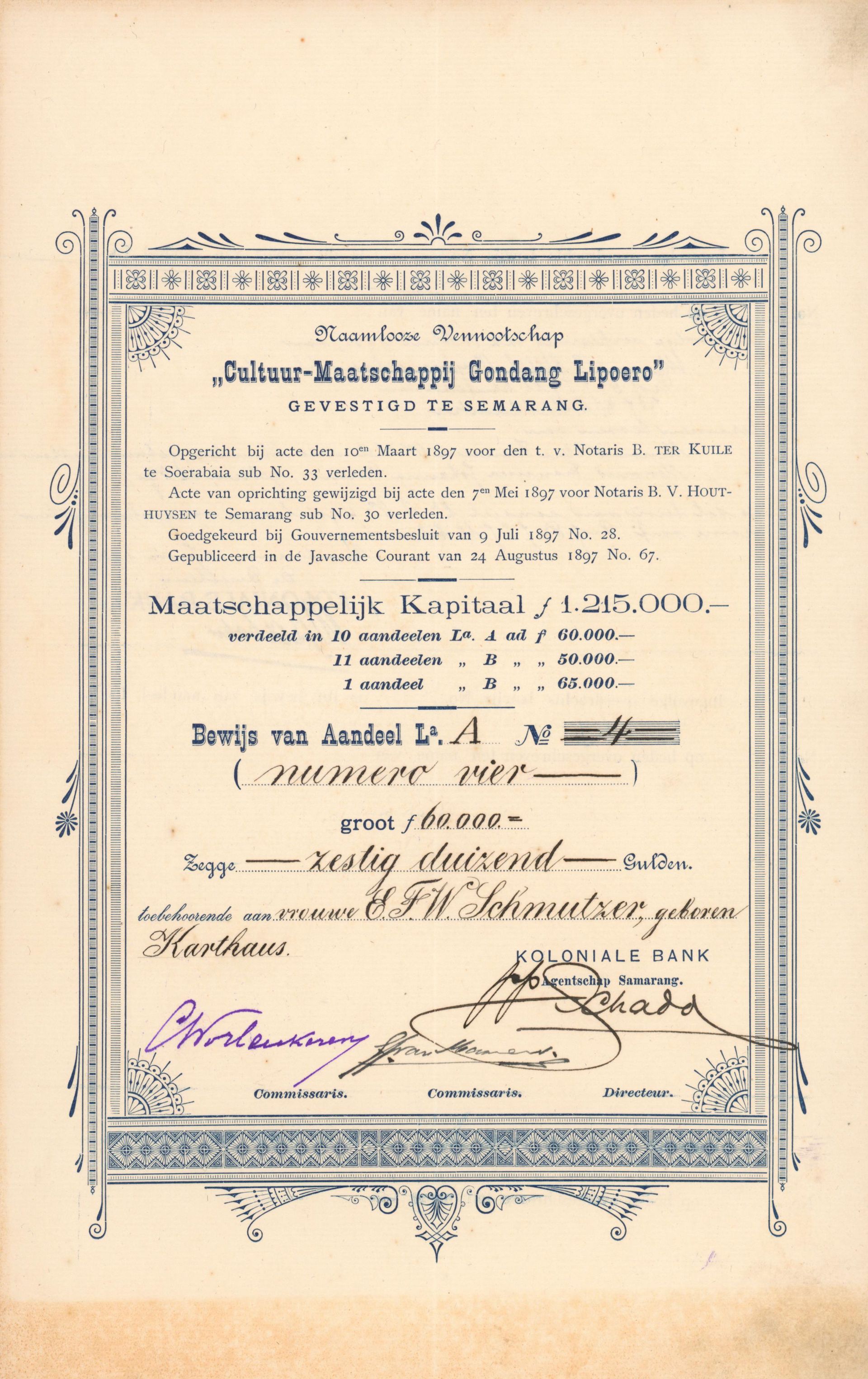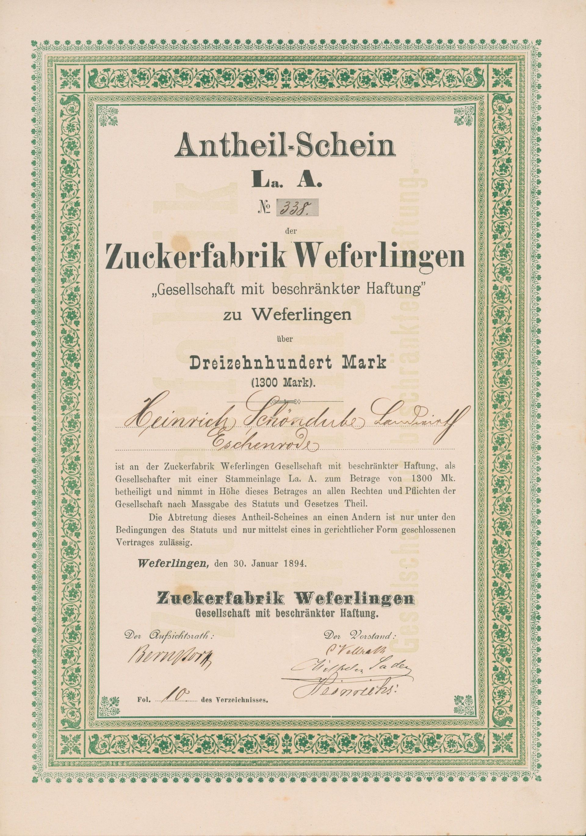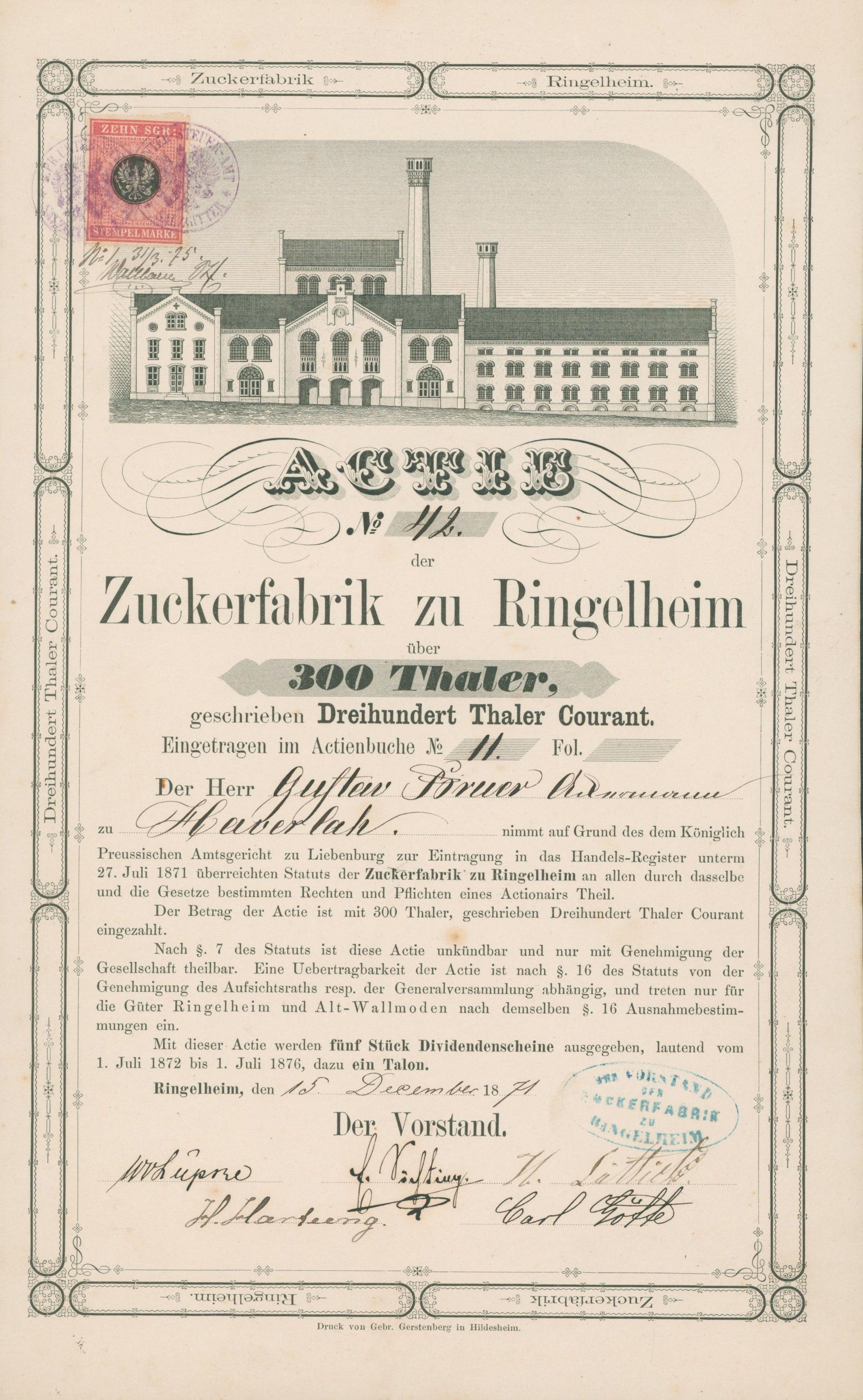 The most probably oldest German-language share certificate