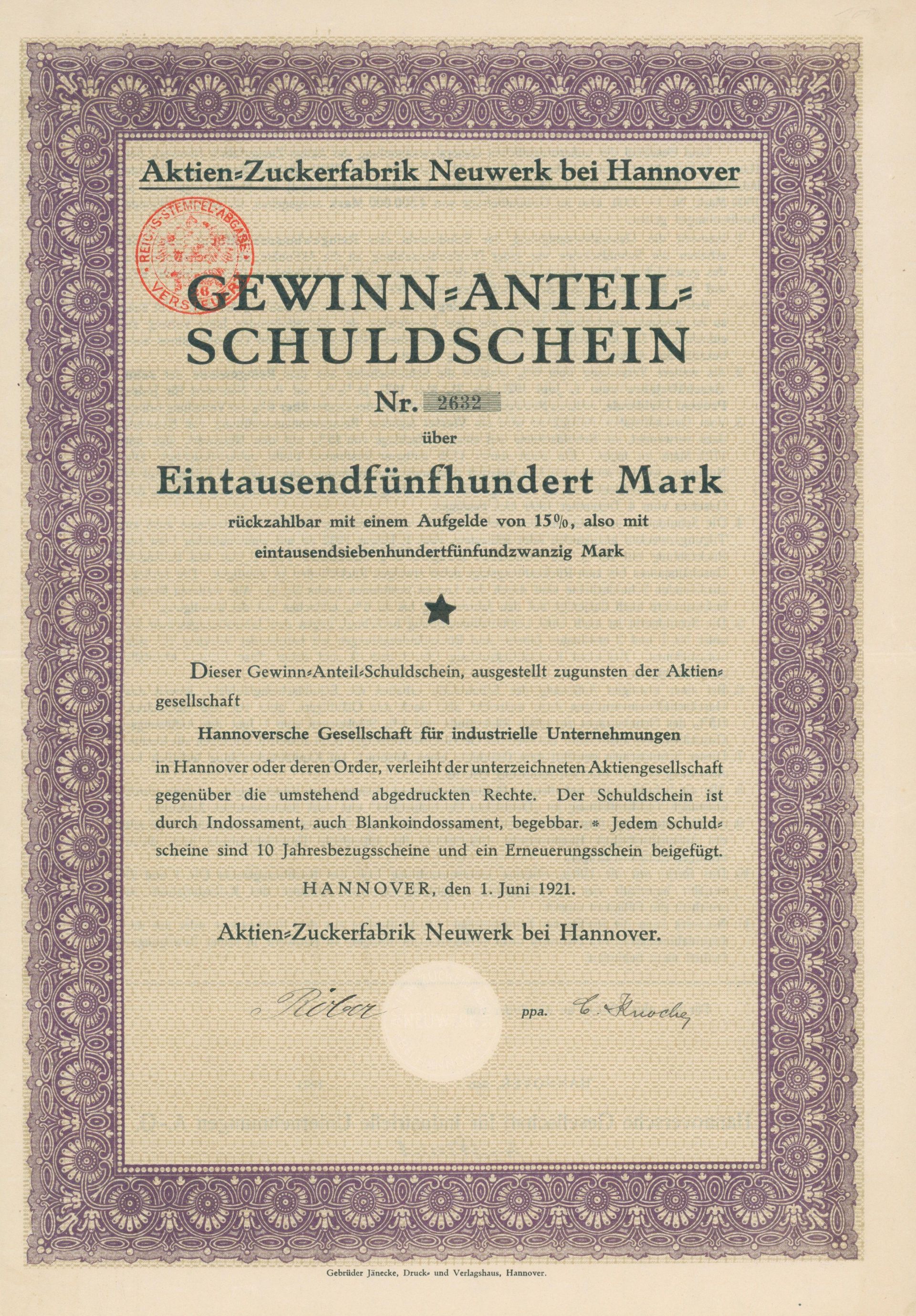 Most collectors specialise - often countries, regions, industries or themes - and if you do not specialise you are faced with millions of potential objects of desire…In my case a fortunate coincidence put me on the right track. In 1990 as a student I read an article on scripophily in the German “Handelsblatt” and was immediately fascinated. I contacted the dealer mentioned (Reinhild Tschöpe) and purchased my first piece - an 1871 share of the sugar factory in Kaurim (Czech Republic). A beautiful print, limited edition, excellent condition and over 100 years old. On closer inspection I found “sugar” a very good industry to focus on: Many but not too many old certificates, often decorative and present almost wherever people live. Especially in my home country Germany the sugar industry was (and is) present throughout the country and often comes with colourful local history. Then there is the personal connection: My grandfather was a farmer and planted sugar beet amongst his crops, which he delivered to a nearby factory. So as a little boy I proudly and very gladly accompanied my grandfather - and feared to be washed away with the beet roots… The 1977 debenture issued to him by Südzucker is not my most impressive piece but certainly the most emotional.